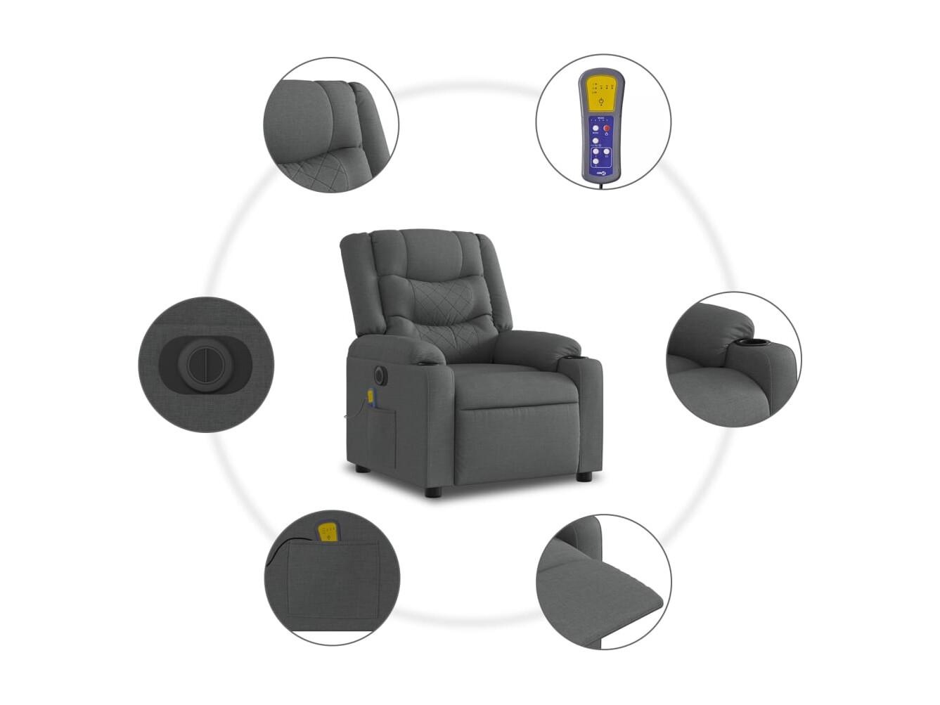 Fauteuil inclinable électrique-Chaise de relax-Fauteuil de Massage gris foncé tissu SHL3467