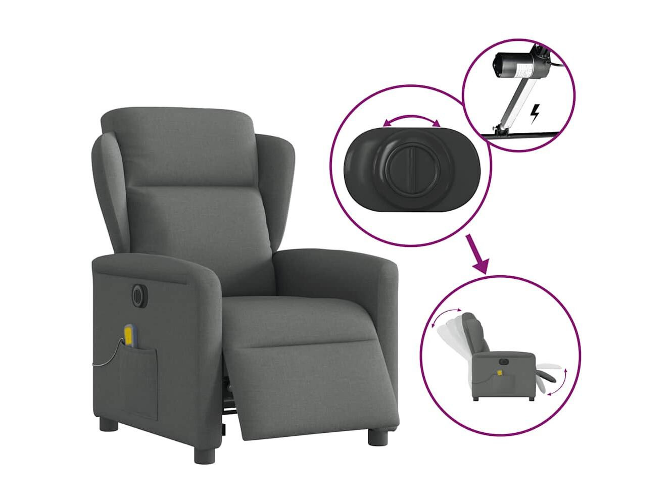 Fauteuil inclinable électrique-Chaise de relax-Fauteuil de Massage gris foncé tissu SHL3563