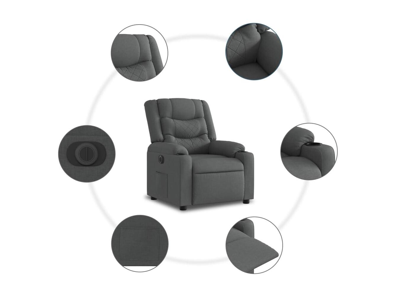 Fauteuil inclinable électrique-Chaise de relax-Fauteuil salon gris foncé tissu SHL3375