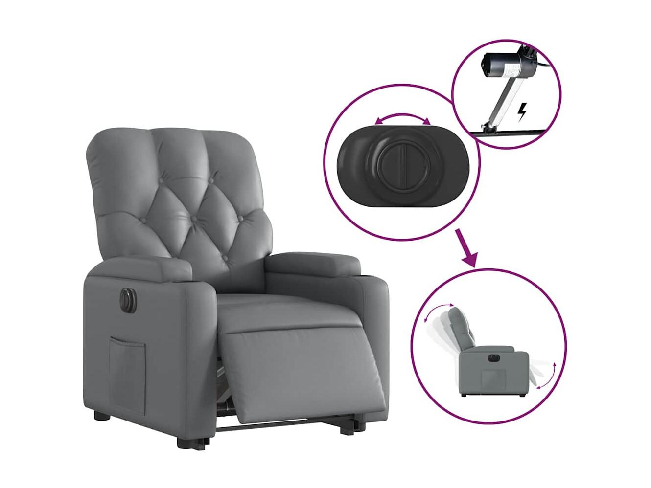 Fauteuil inclinable électrique-Chaise de relax-Fauteuil salon gris similicuir SHL3716