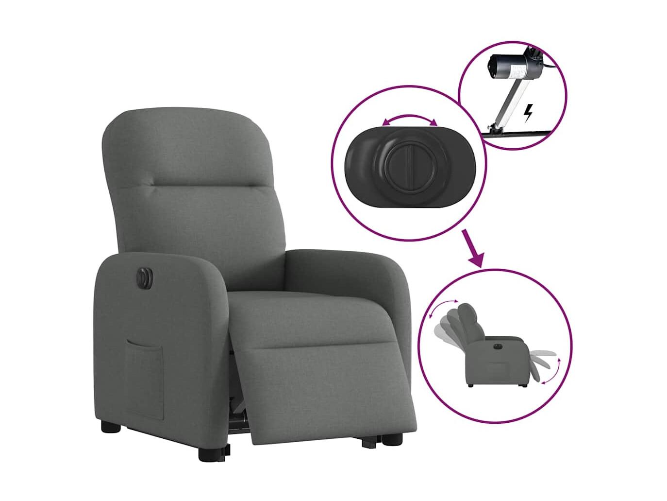 Fauteuil inclinable électrique-Chaise de relax-Fauteuil TV gris foncé tissu SHL1059