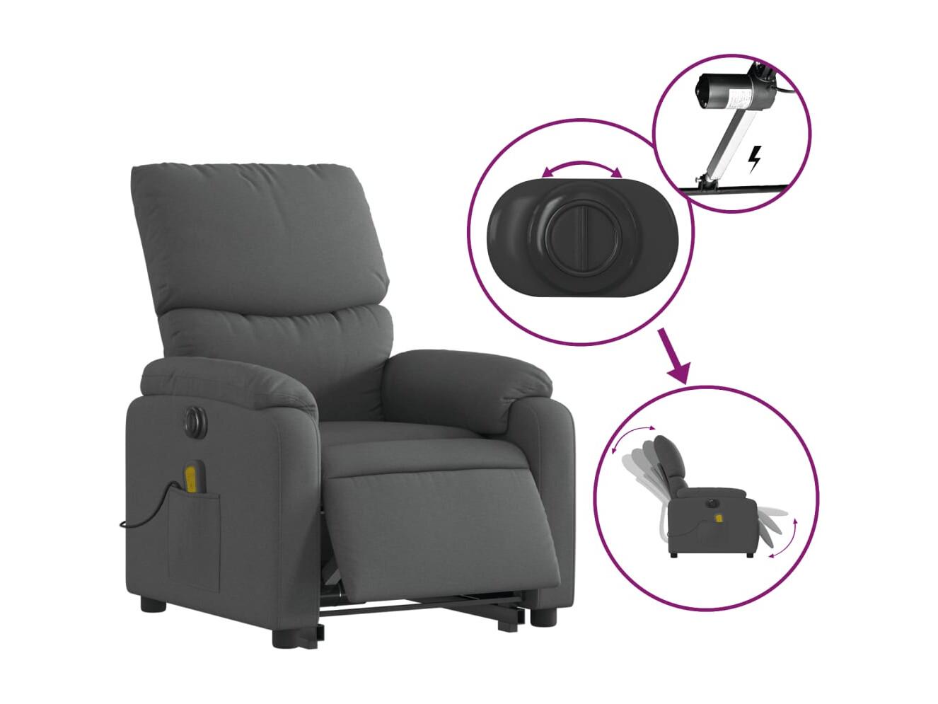 Fauteuil inclinable électrique-Chaise-Fauteuil de Massage Gris foncé Tissu SHL4133