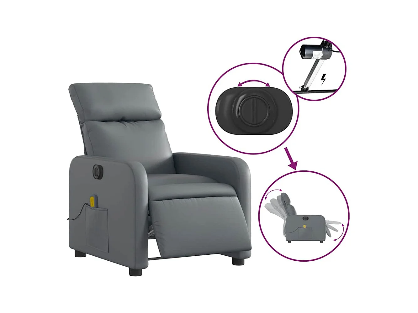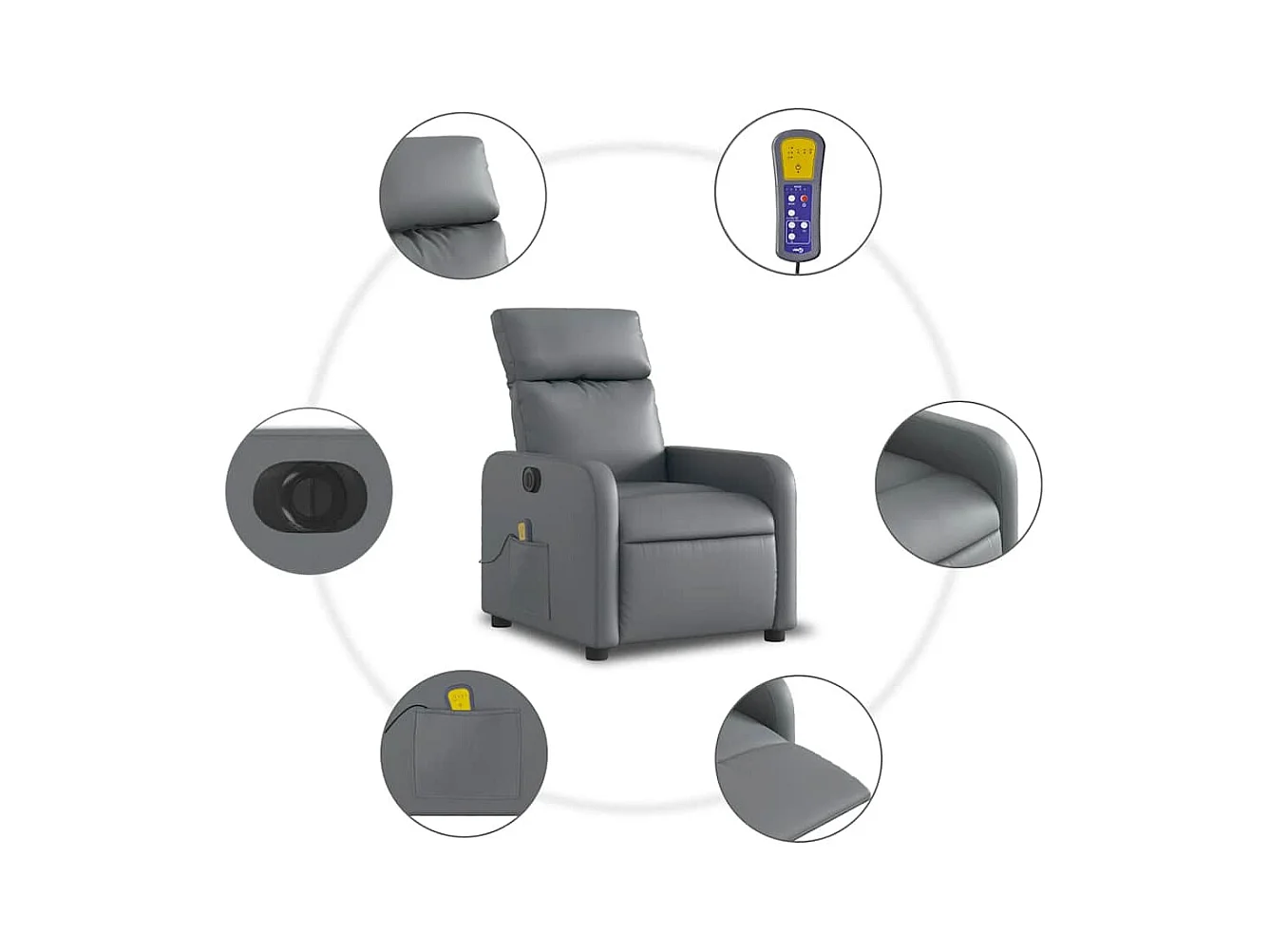 Fauteuil inclinable électrique-Fauteuil de massage de Salon gris similicuir SHL2217