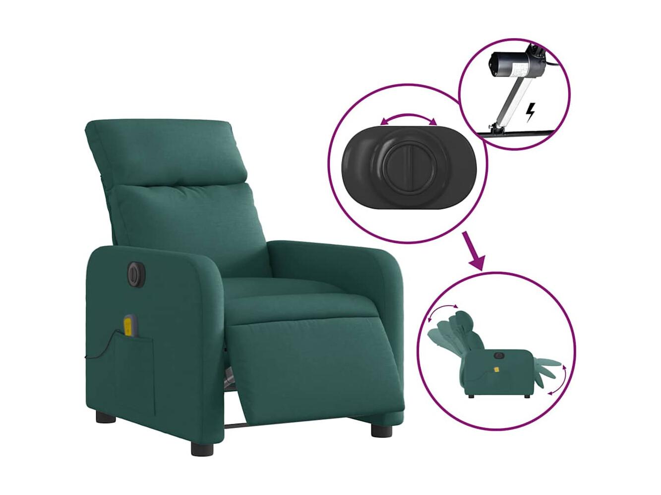 Fauteuil inclinable électrique-Fauteuil de massage de Salon Vert foncé Tissu SHL3614