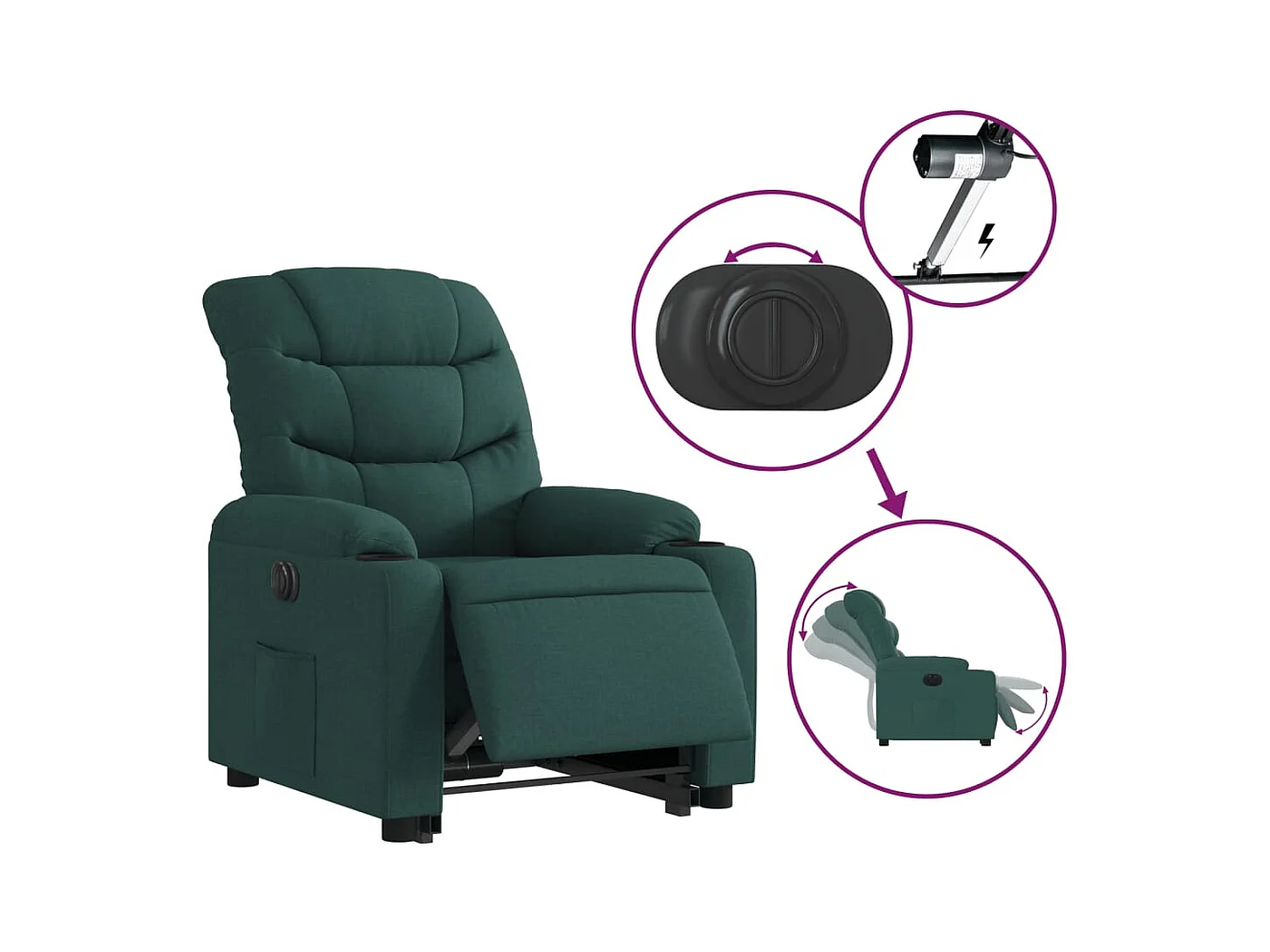 Fauteuil inclinable électrique vert foncé tissu REO20927