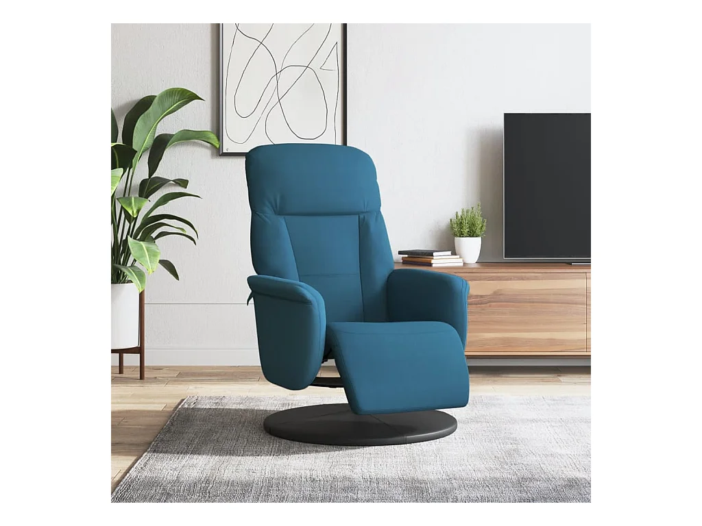 Fauteuil inclinable-Fauteuil salon avec repose-pied bleu velours SHL2481