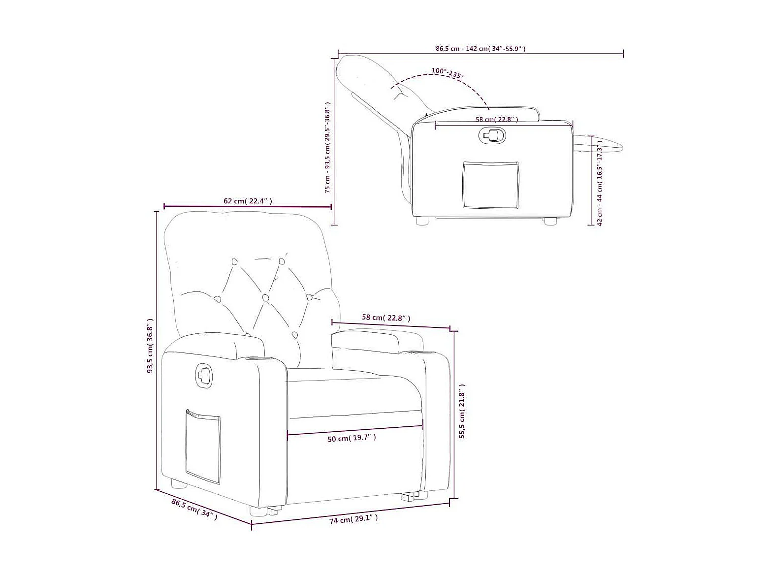 Fauteuil inclinable Gris clair Tissu
