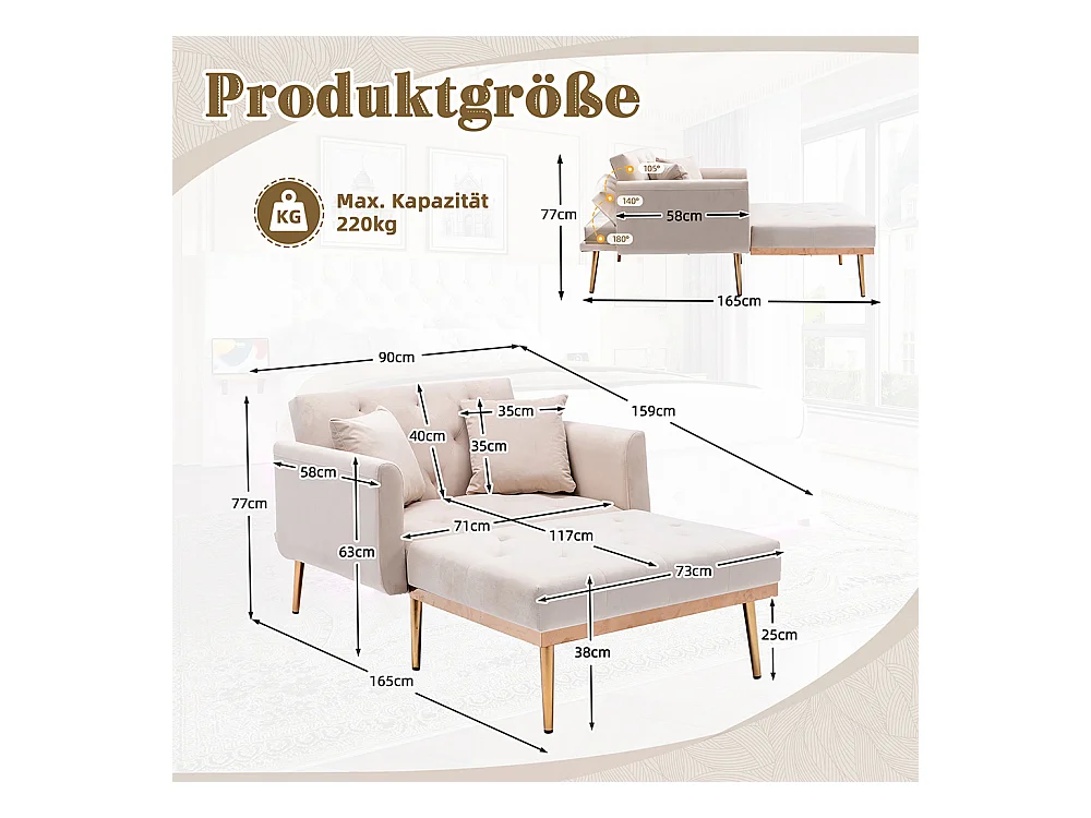 Fauteuil inclinable moderne dossier réglable chaise longue pliable salon bureau beige