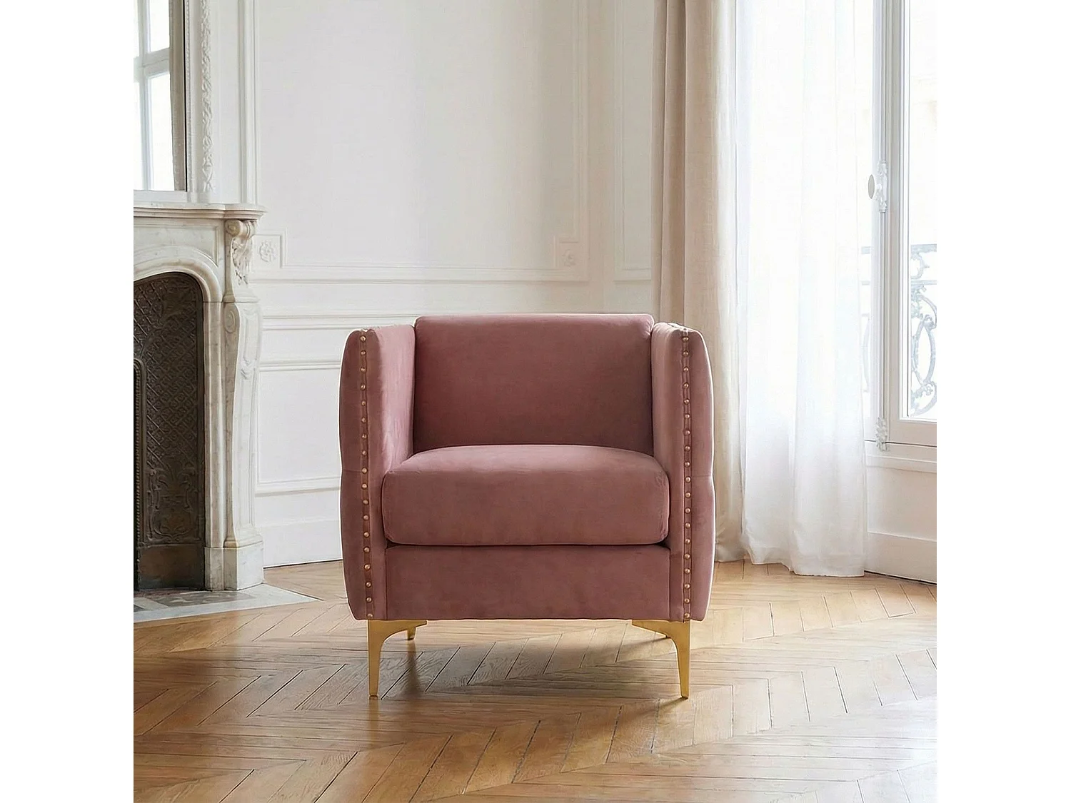 Fauteuil Design en Velours "Suez" 83cm Rose
