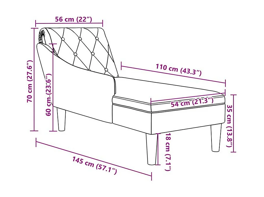 Fauteuil long avec coussin et accoudoir droit noir tissu