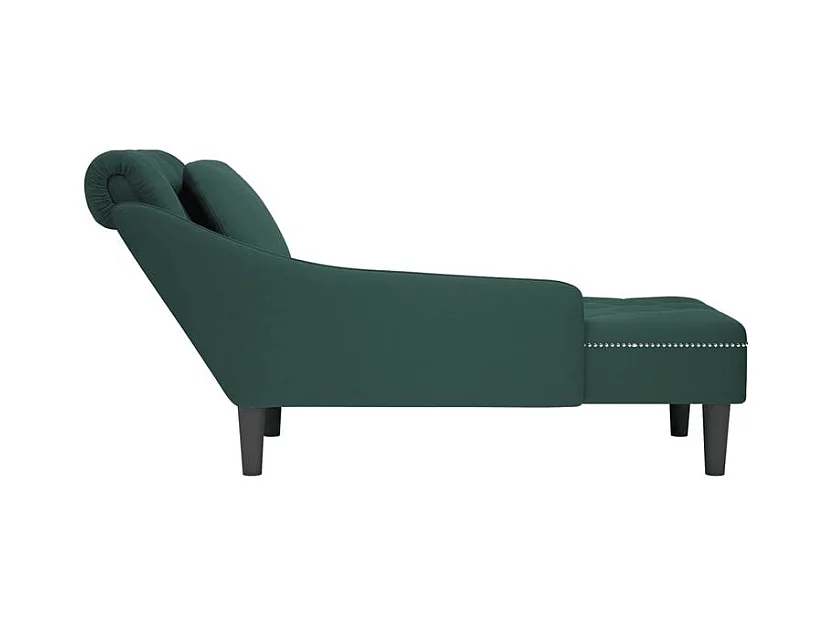 Fauteuil long et coussin et accoudoir droit vert foncé velours