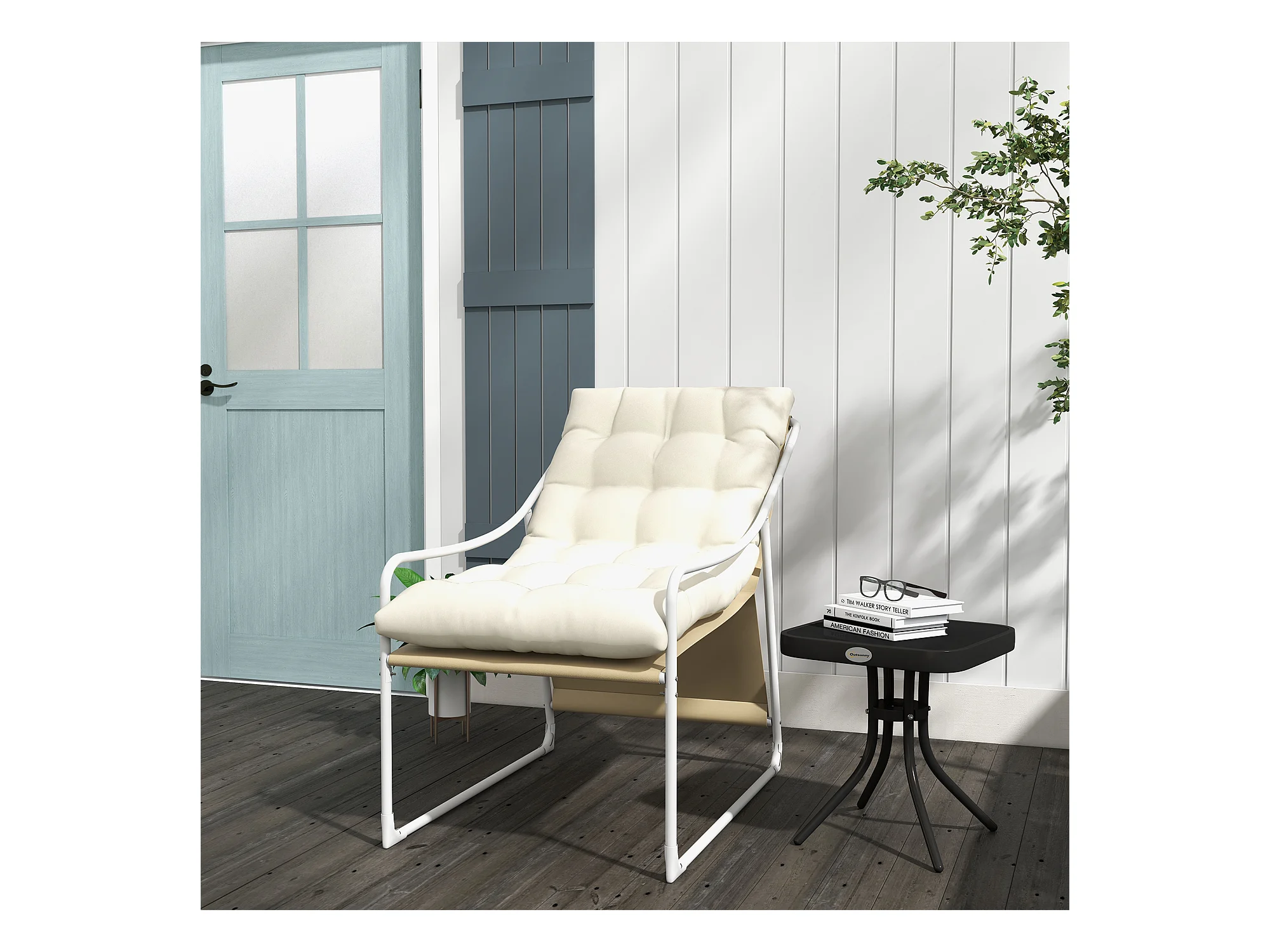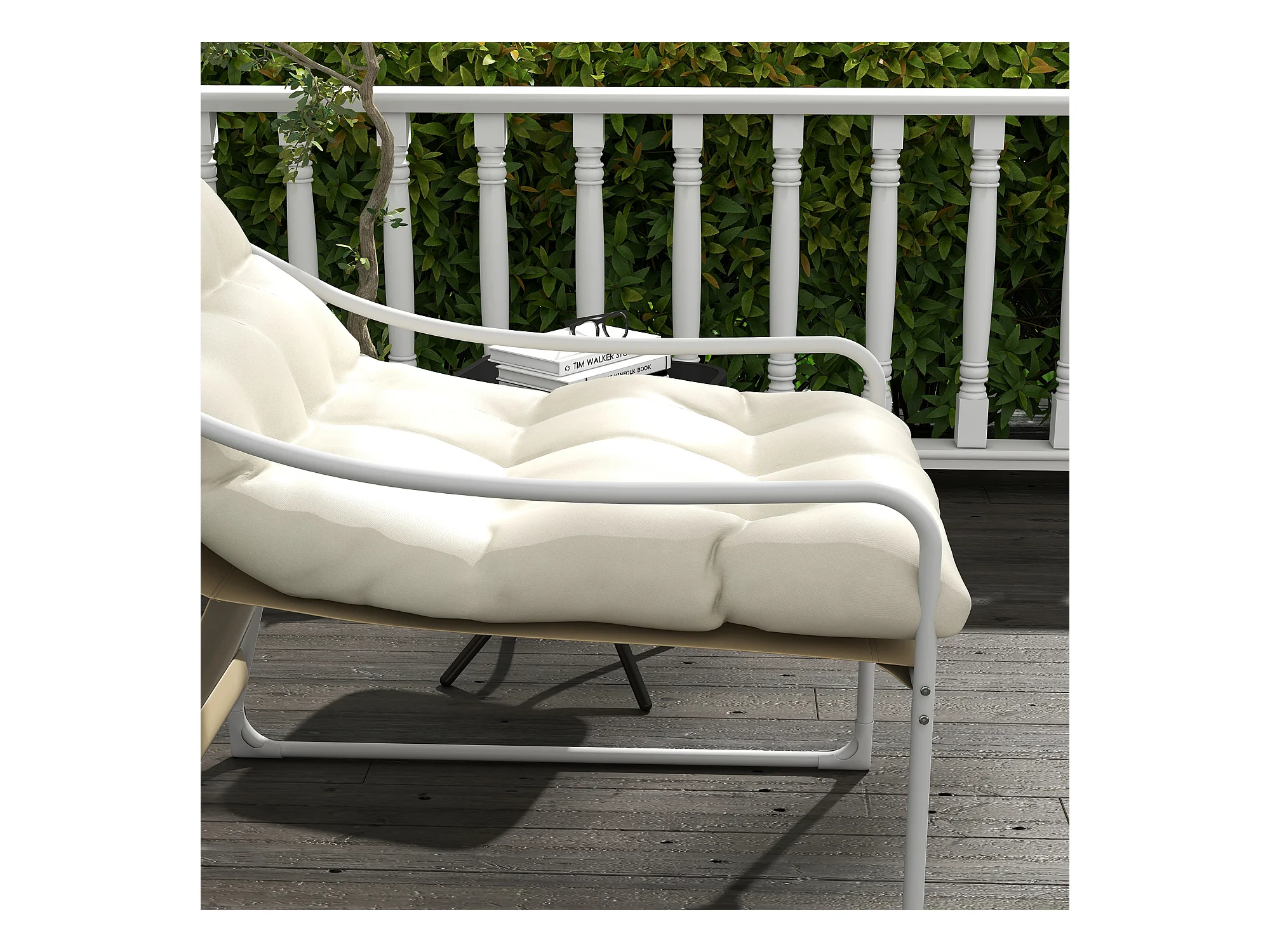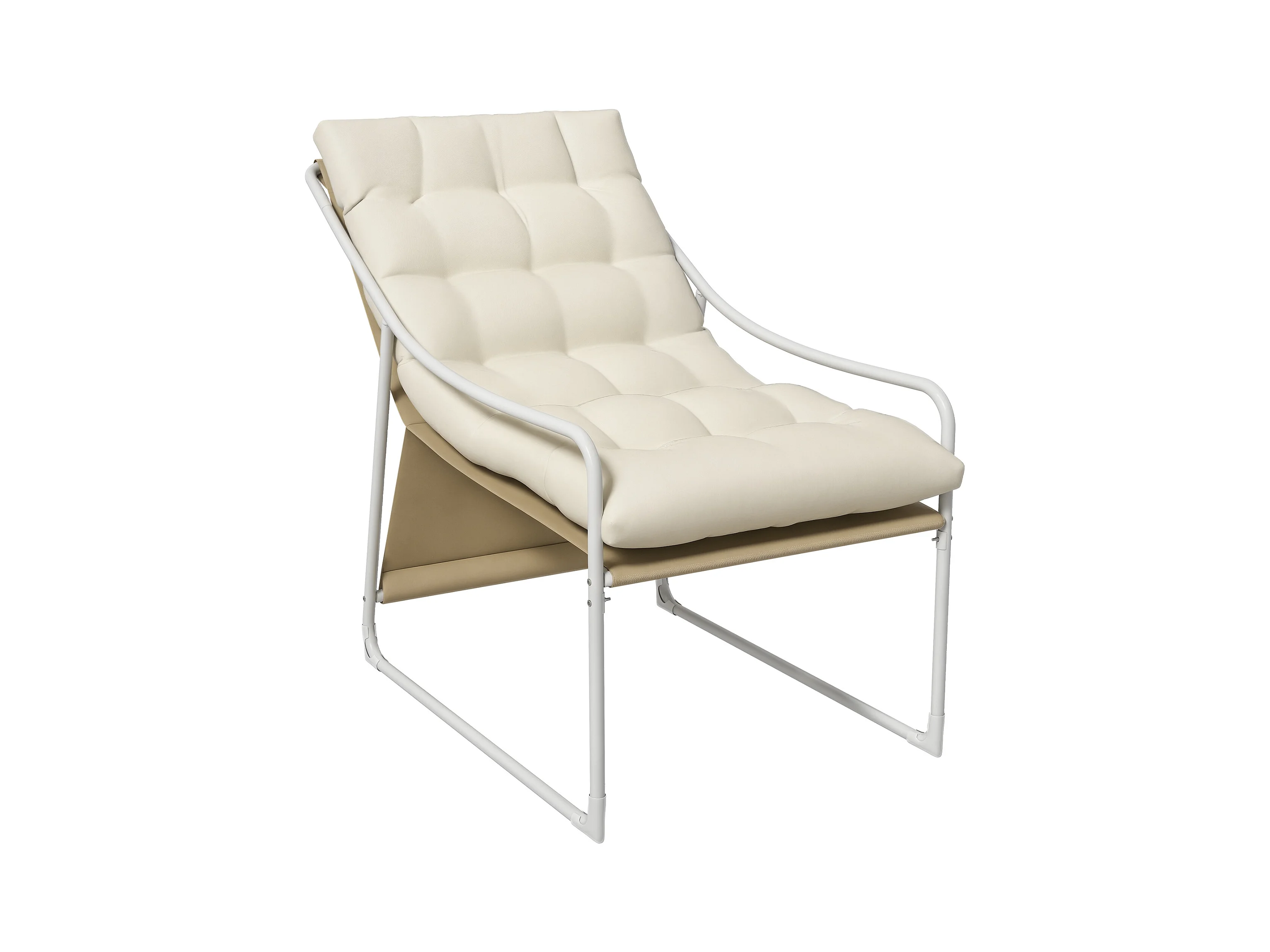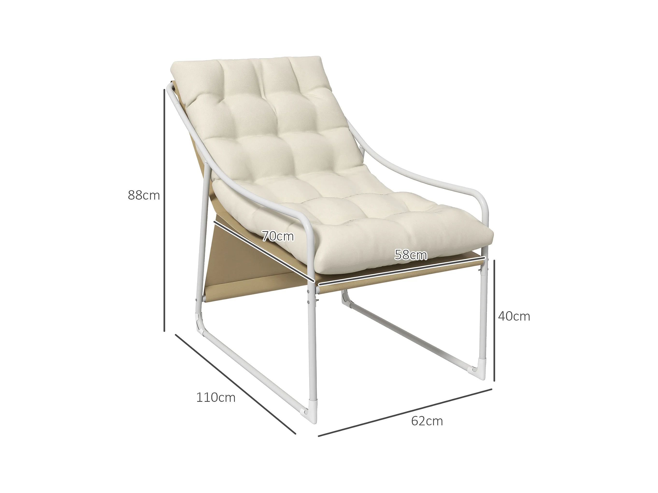 Fauteuil lounge de jardin avec coussin acier époxy polyester blanc beige crème