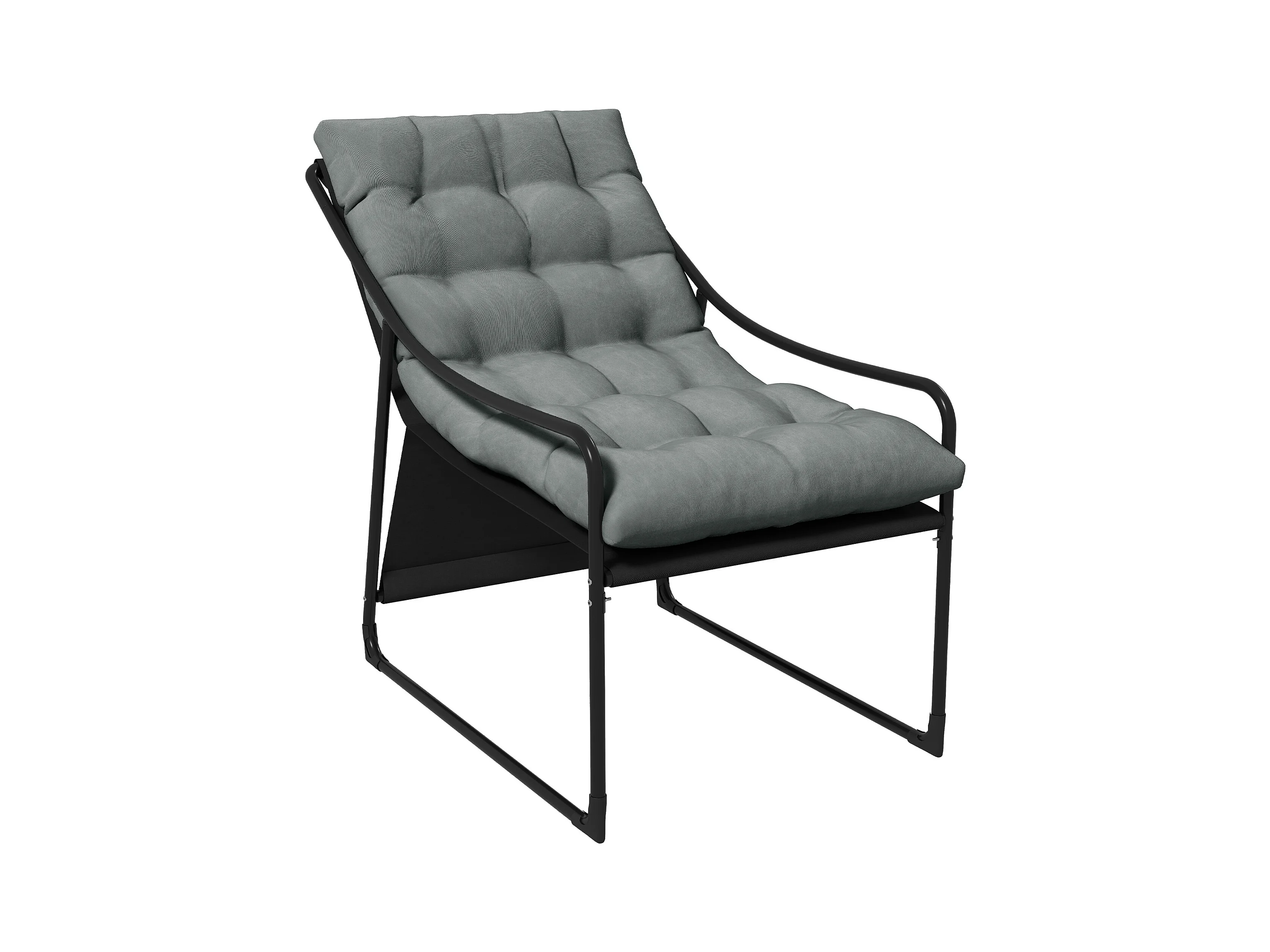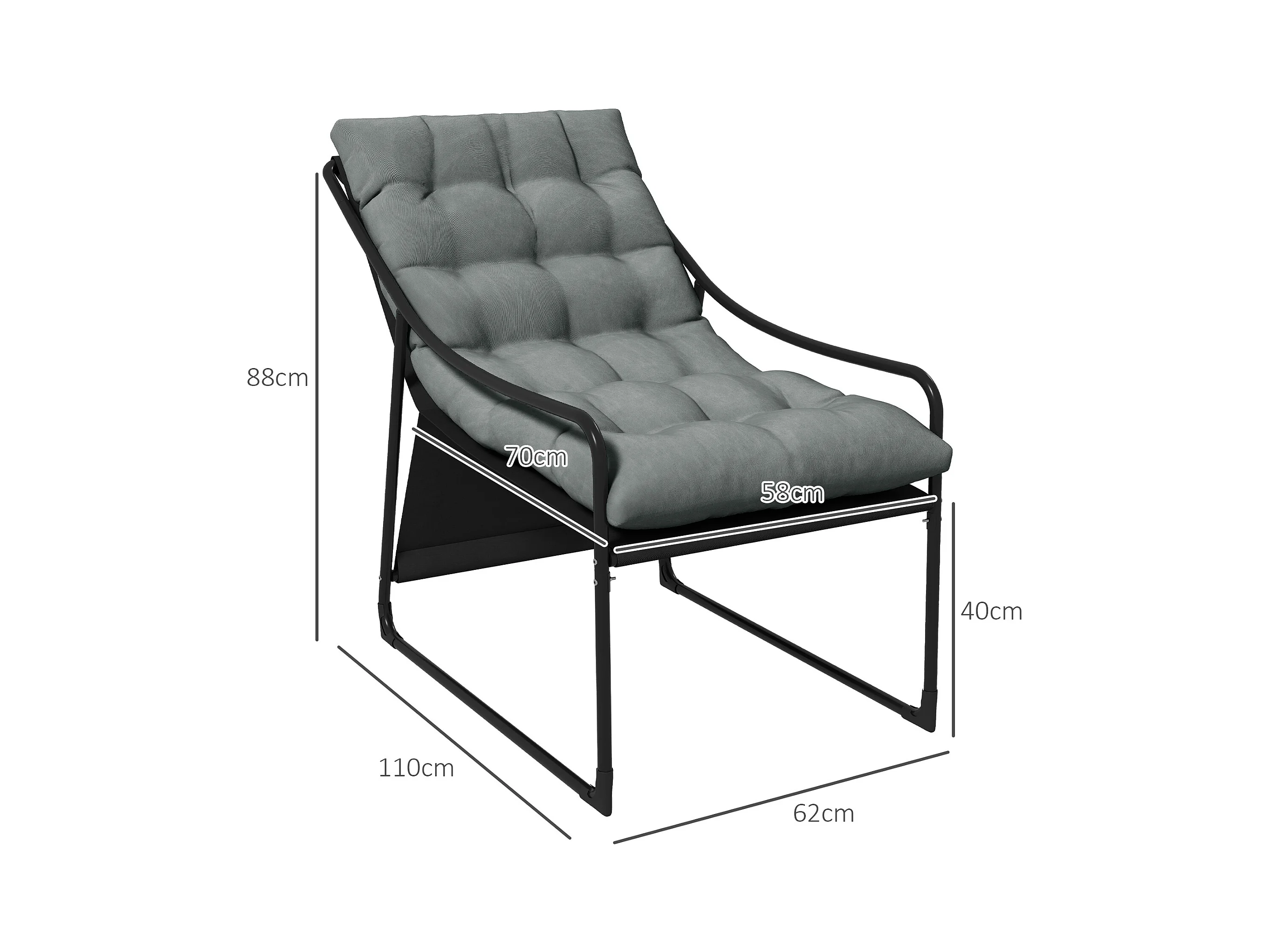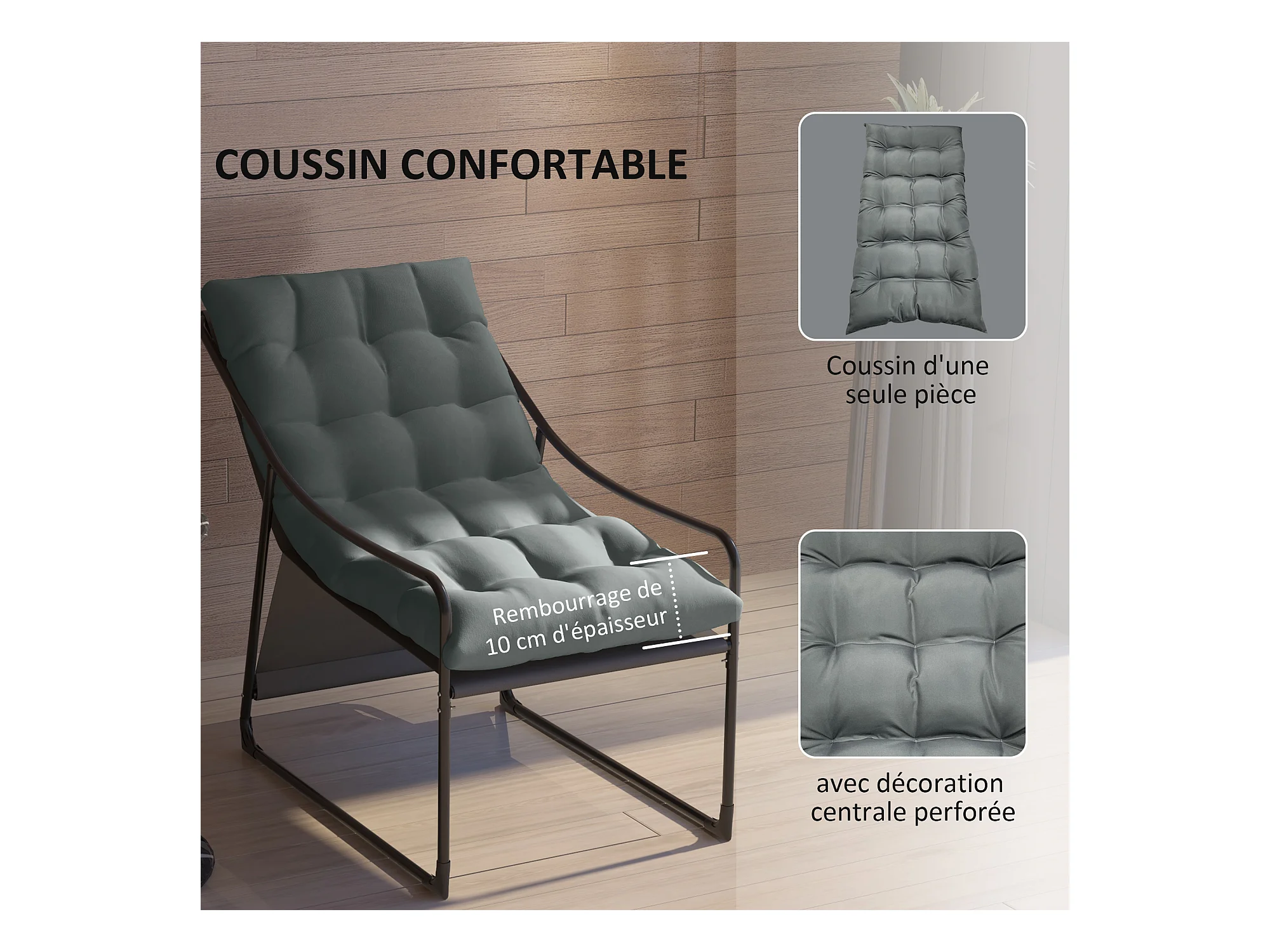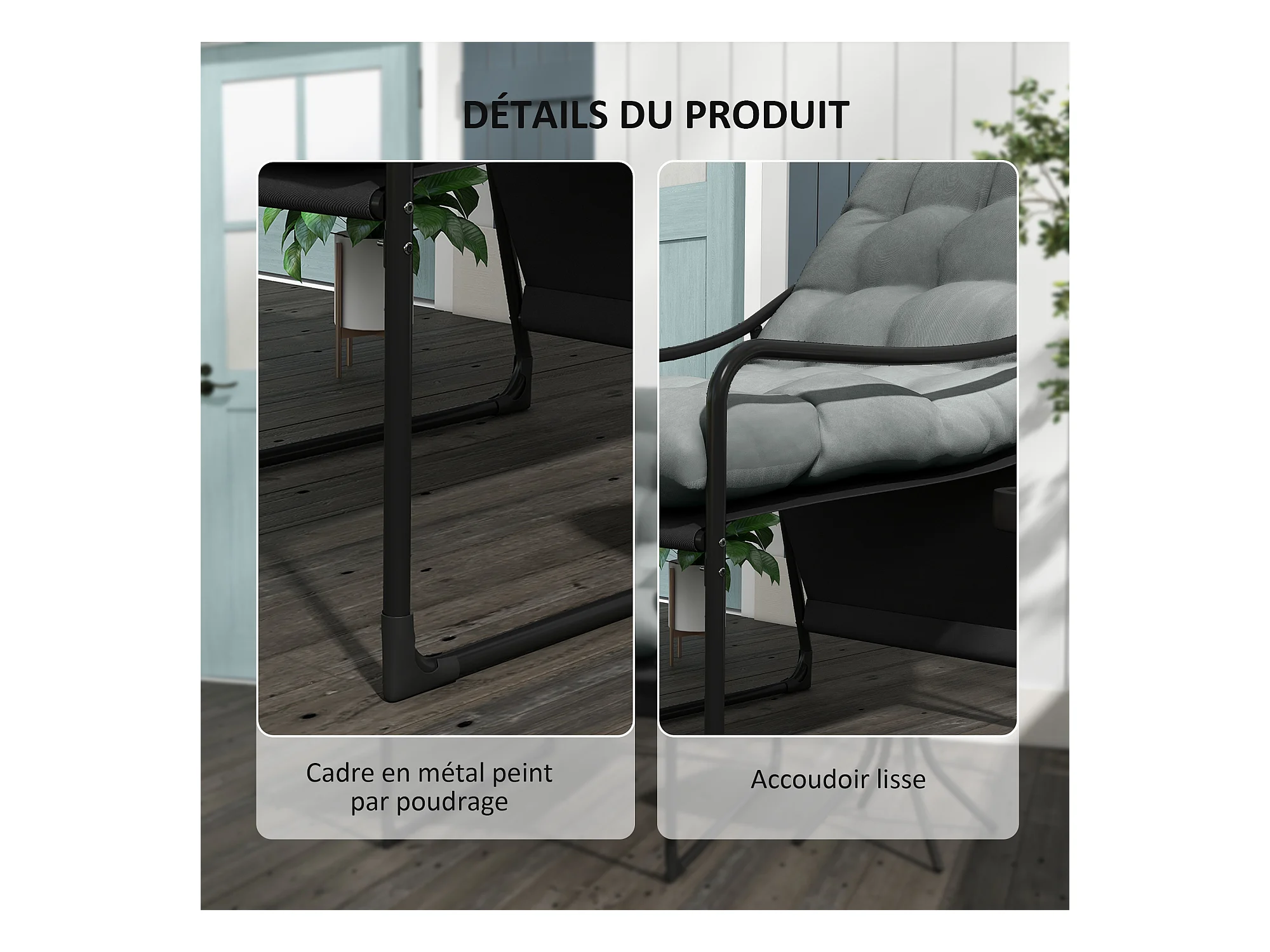 Fauteuil lounge de jardin avec coussin acier époxy polyester gris noir