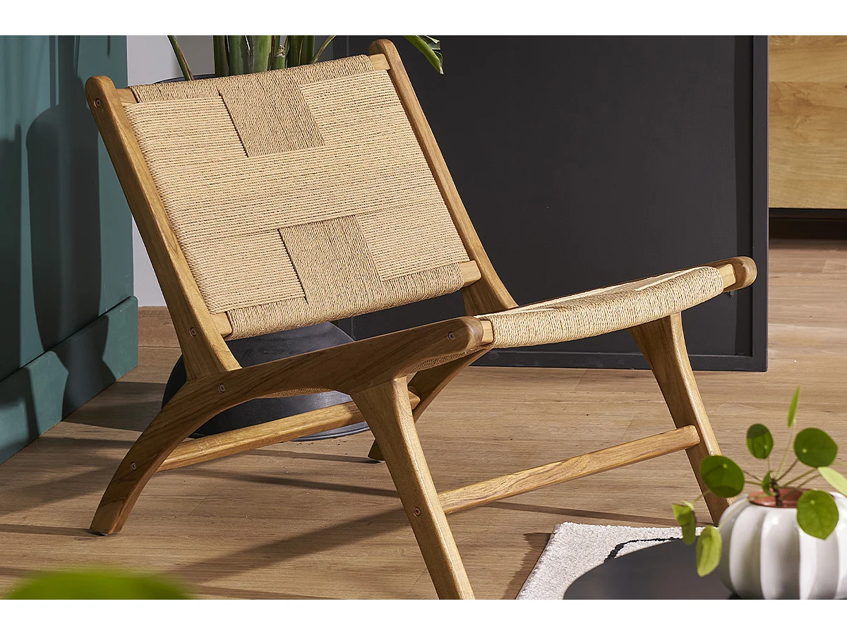 Fauteuil lounge en bois teck massif et corde tressée YARI