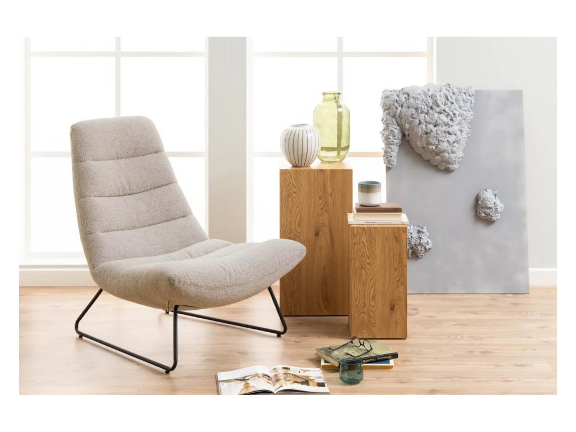 Fauteuil lounge en tissu bouclette beige - WESTON