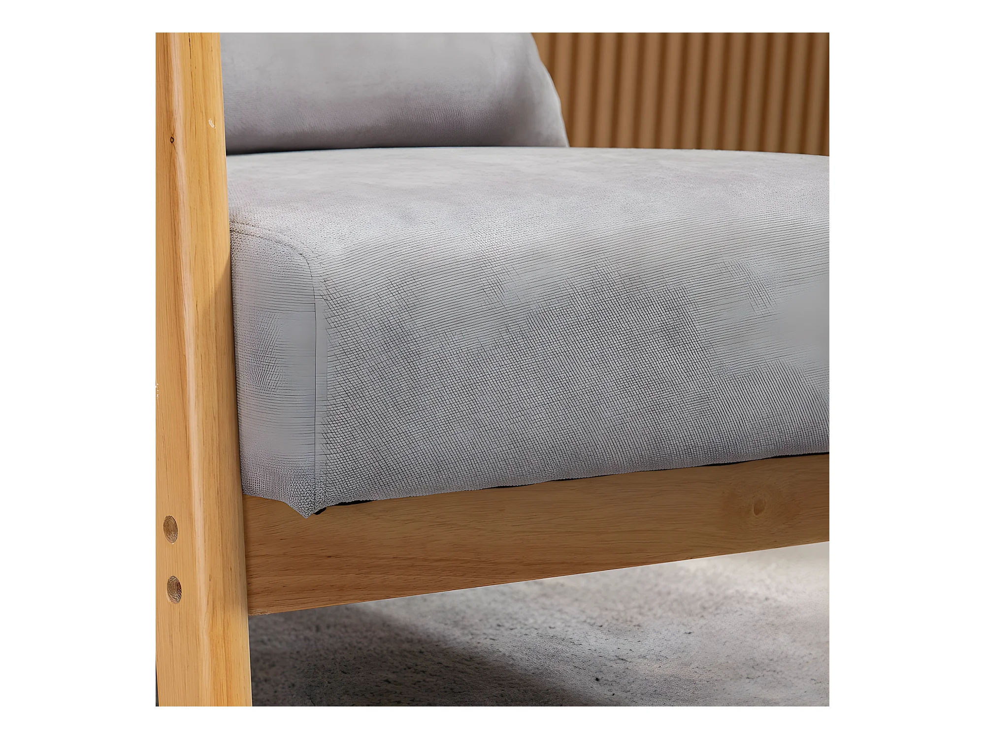 Fauteuil lounge EVA gris, en bois et aspect velours