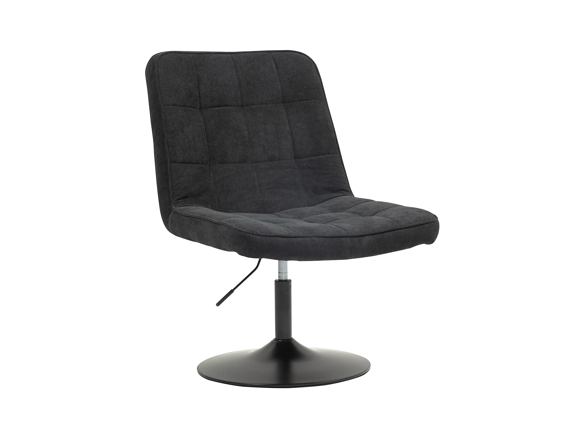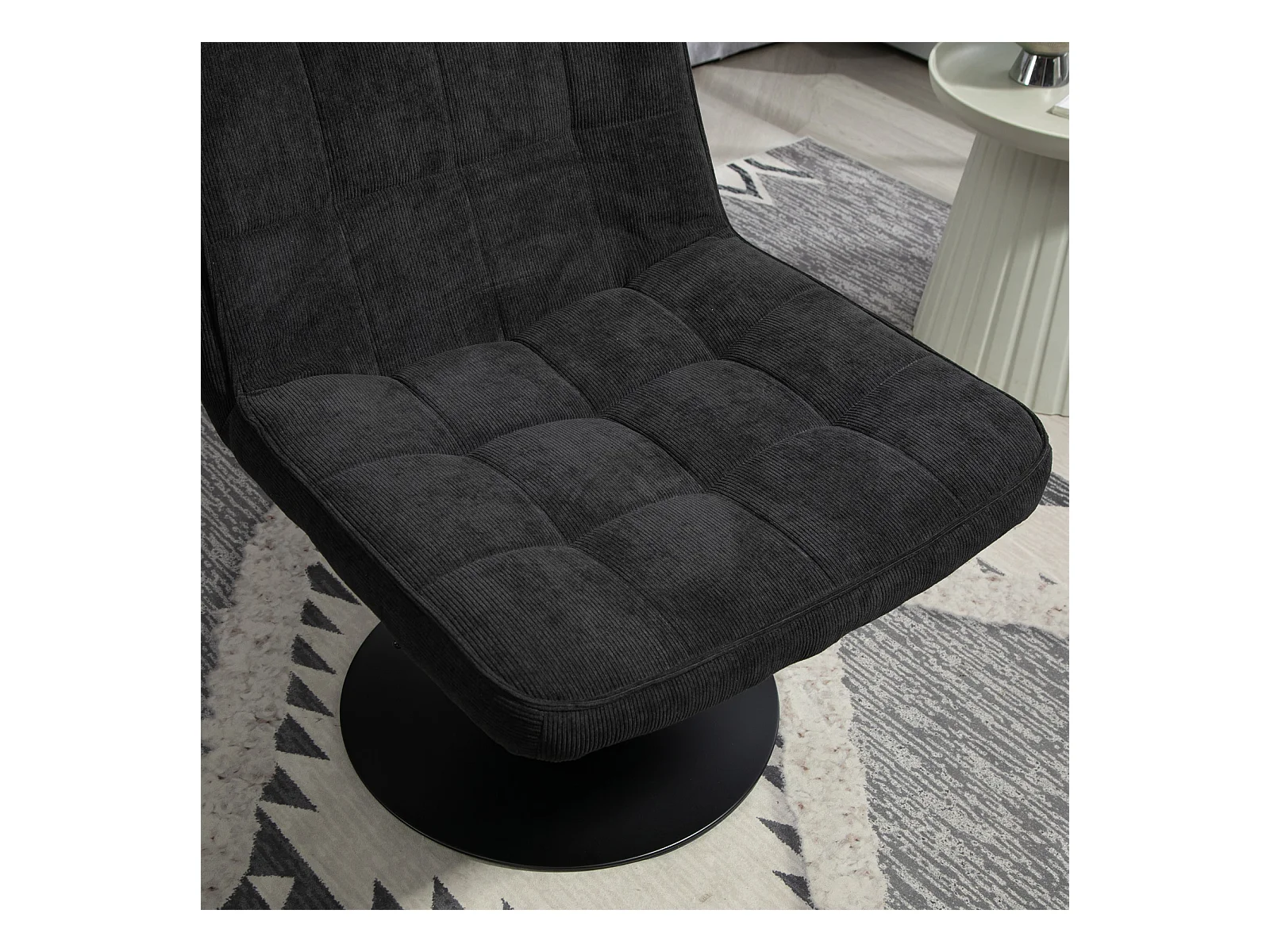 Fauteuil lounge HENRY chaise rembourrée avec base pivotante et couverture en velours côtelé noir