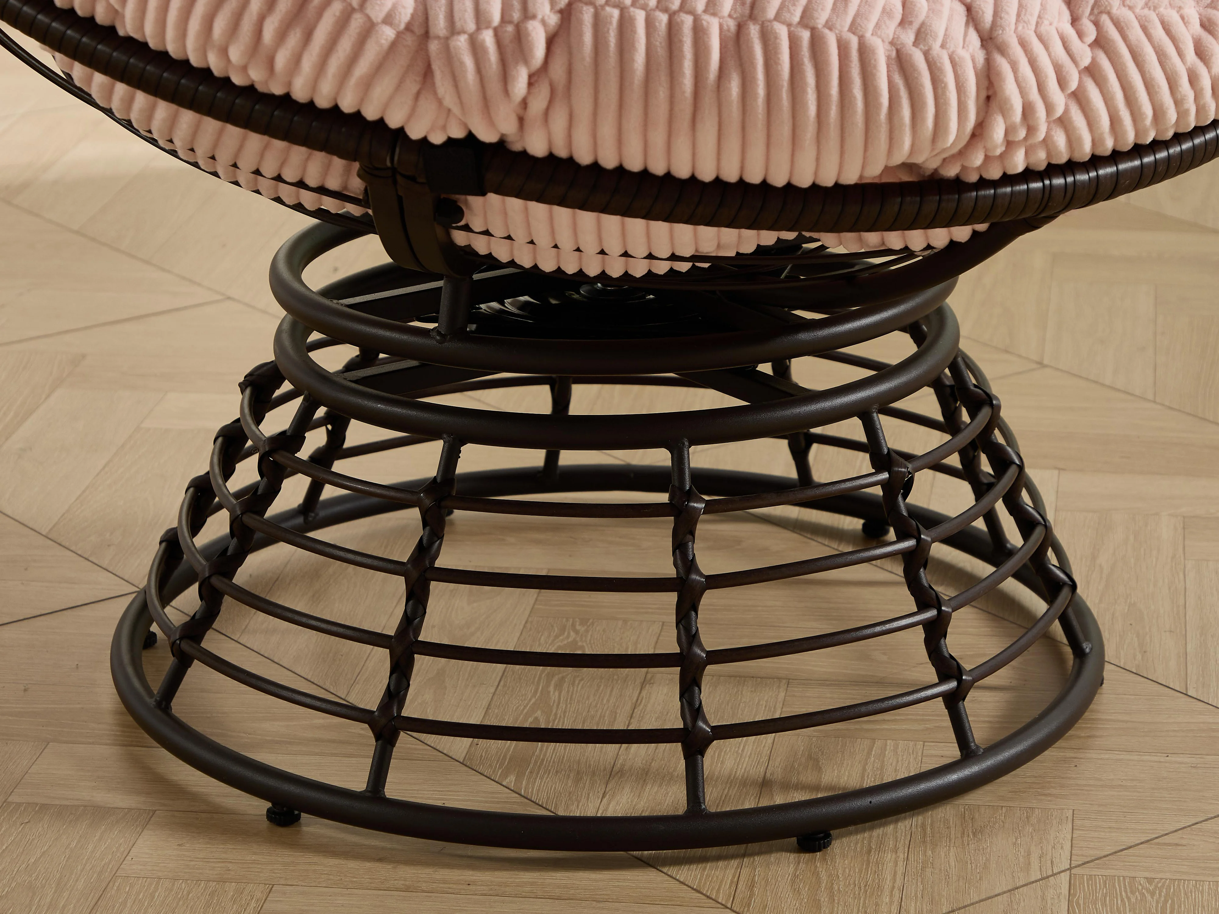 Fauteuil lounge papasan style bohème, pivotant 360° forme œuf en rotin PE avec coussin épais pour salon et balcon