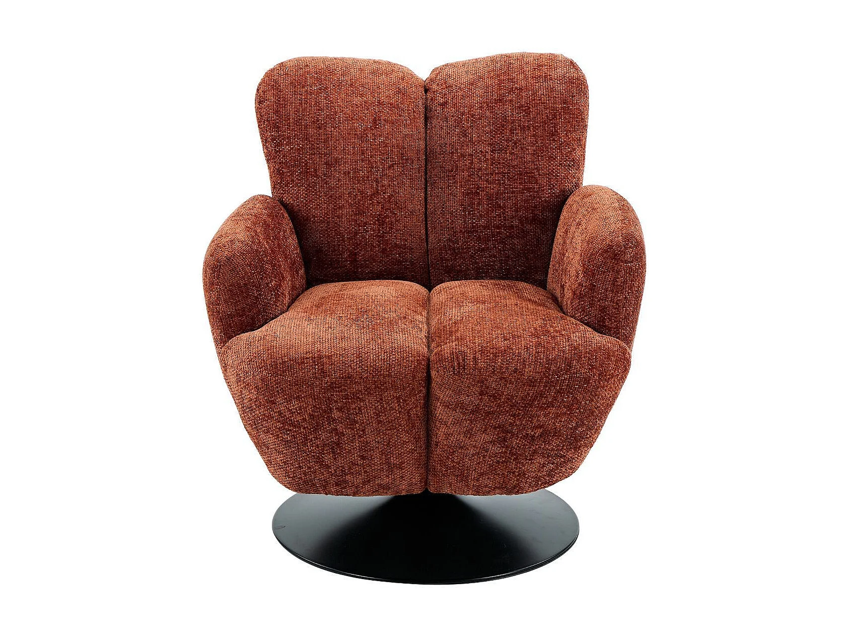 Fauteuil lounge pivotant avec accoudoir en tissu chenillé terracotta piètement socle métal noir - GOTHAM