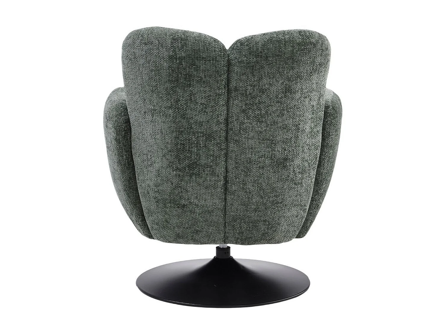 Fauteuil lounge pivotant avec accoudoir en tissu chenillé vert piètement socle métal noir - GOTHAM