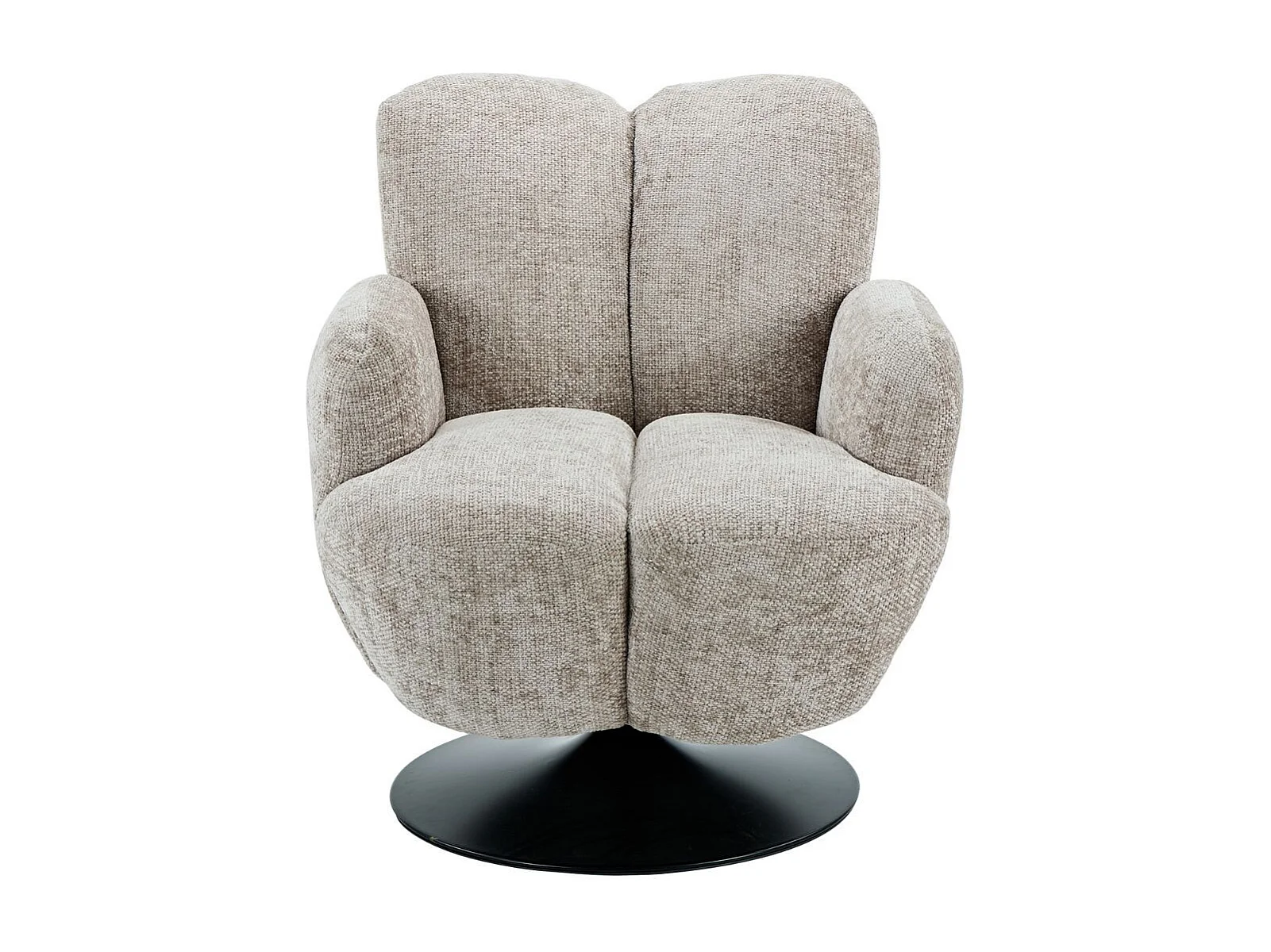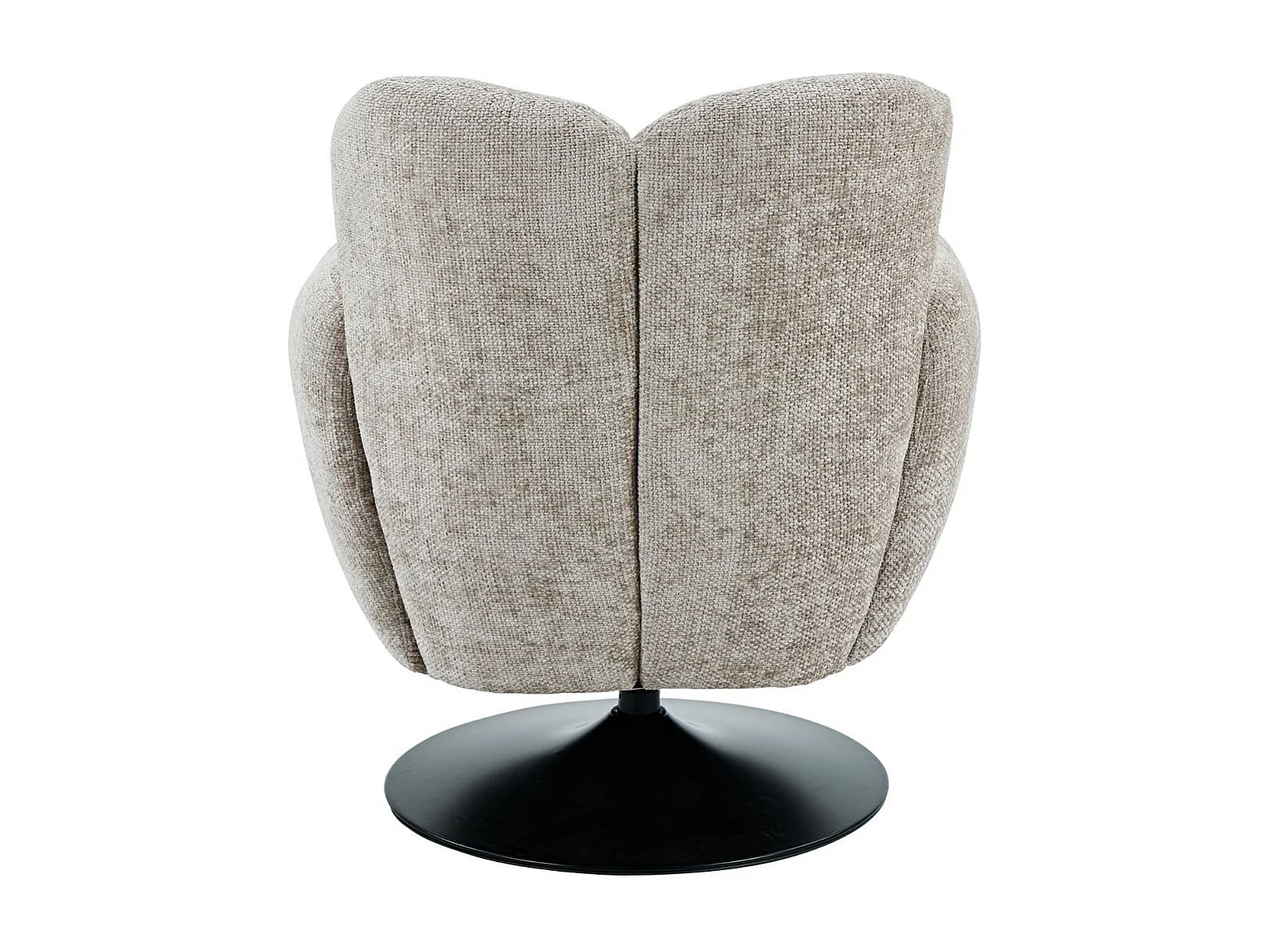 Fauteuil lounge pivotant avec accoudoir en tissu chenillé beige piètement socle métal noir - GOTHAM