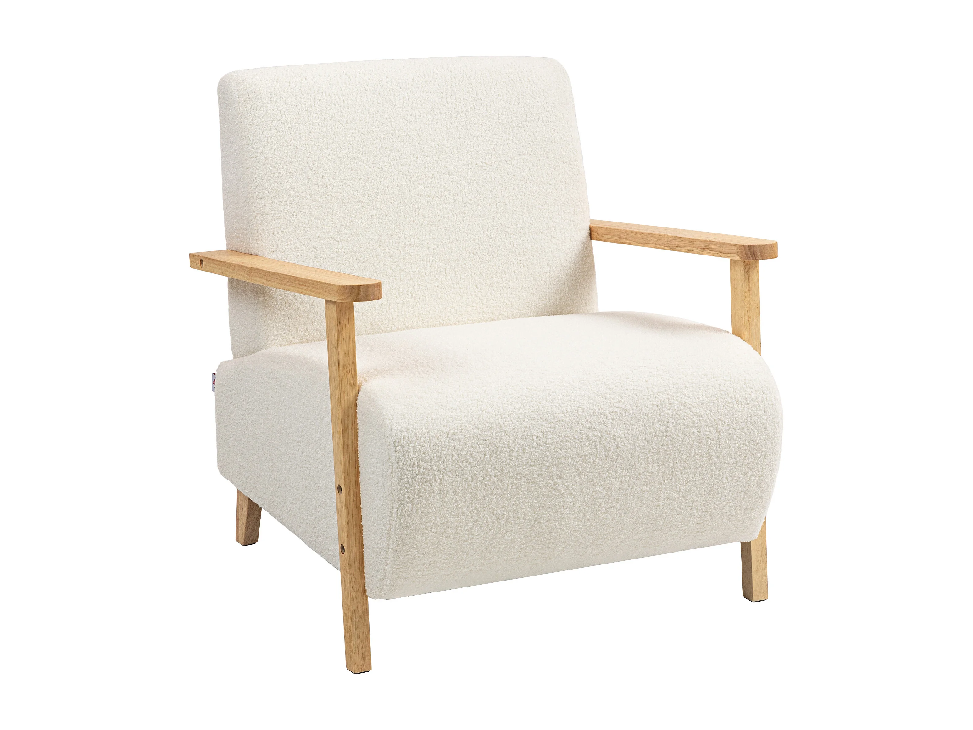 Fauteuil lounge style nordique effet laine bouclée crème structure bois