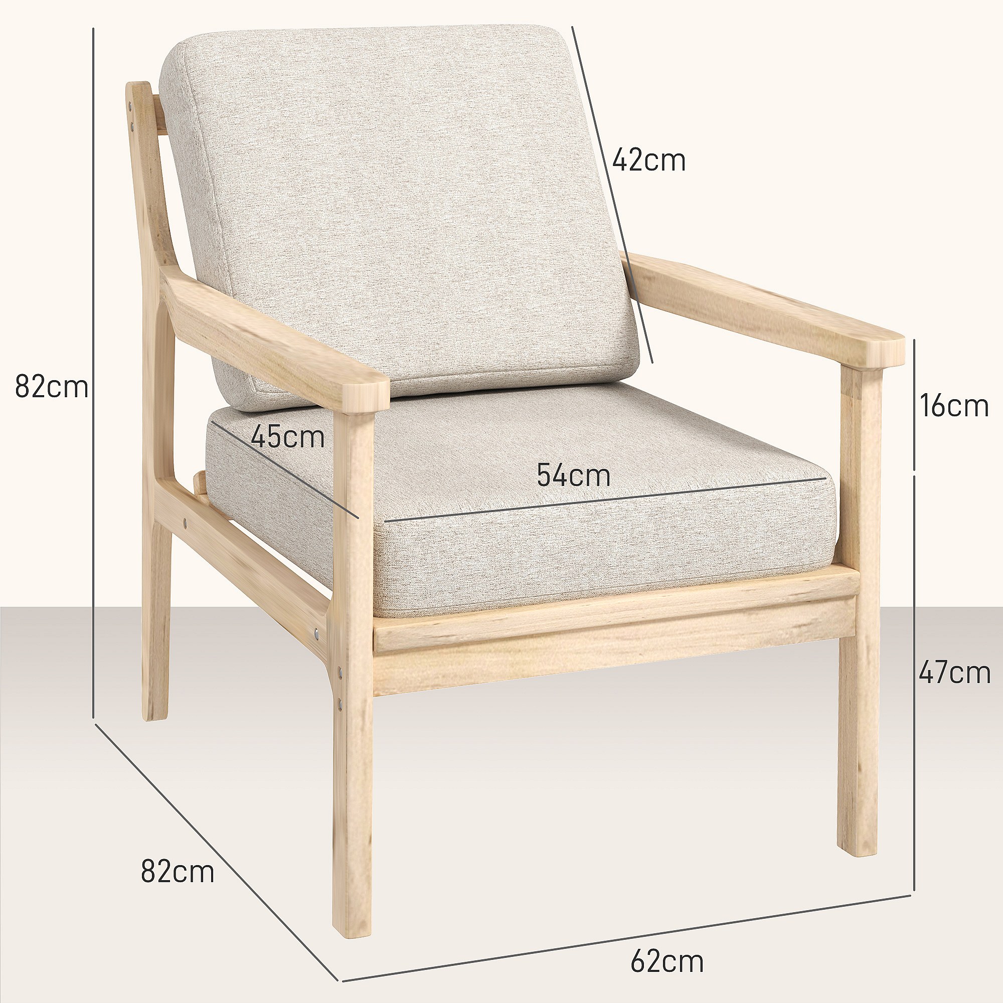 Fauteuil lounge style nordique piètement structure accoudoirs bois naturel épais coussins tissu beige