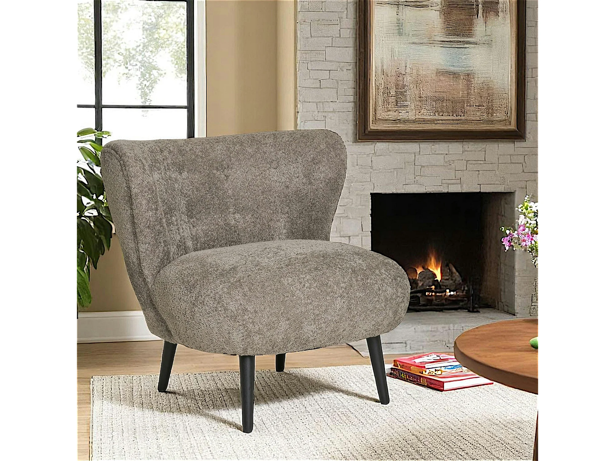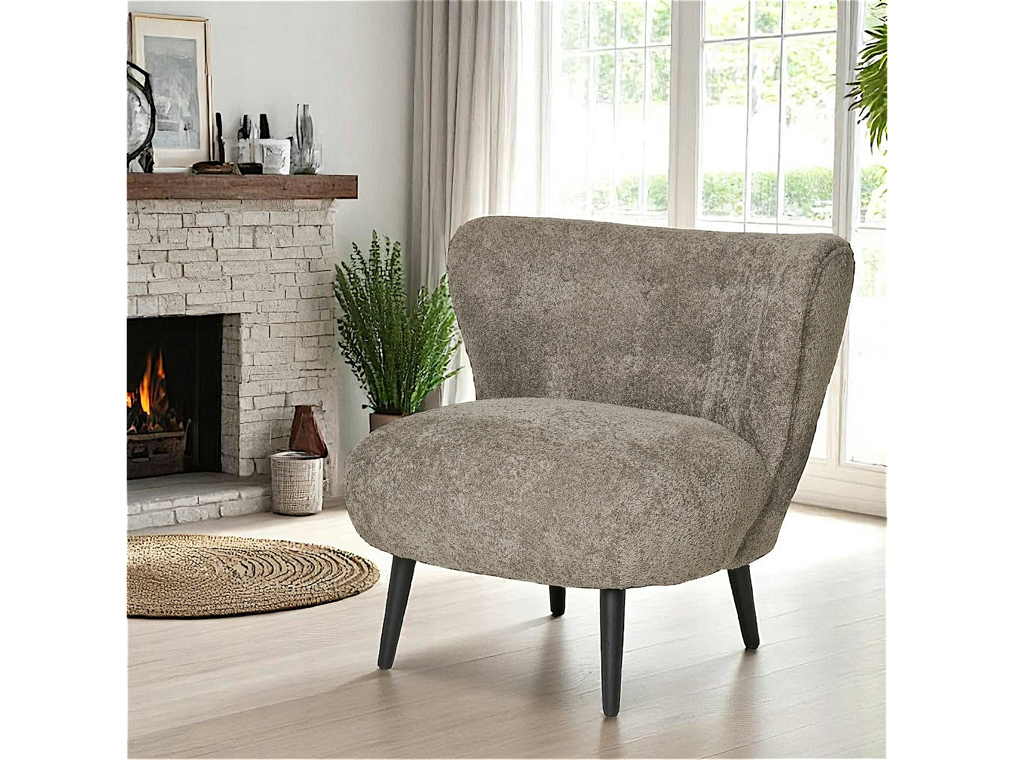 Fauteuil marron en tissu bouclette BERLIN