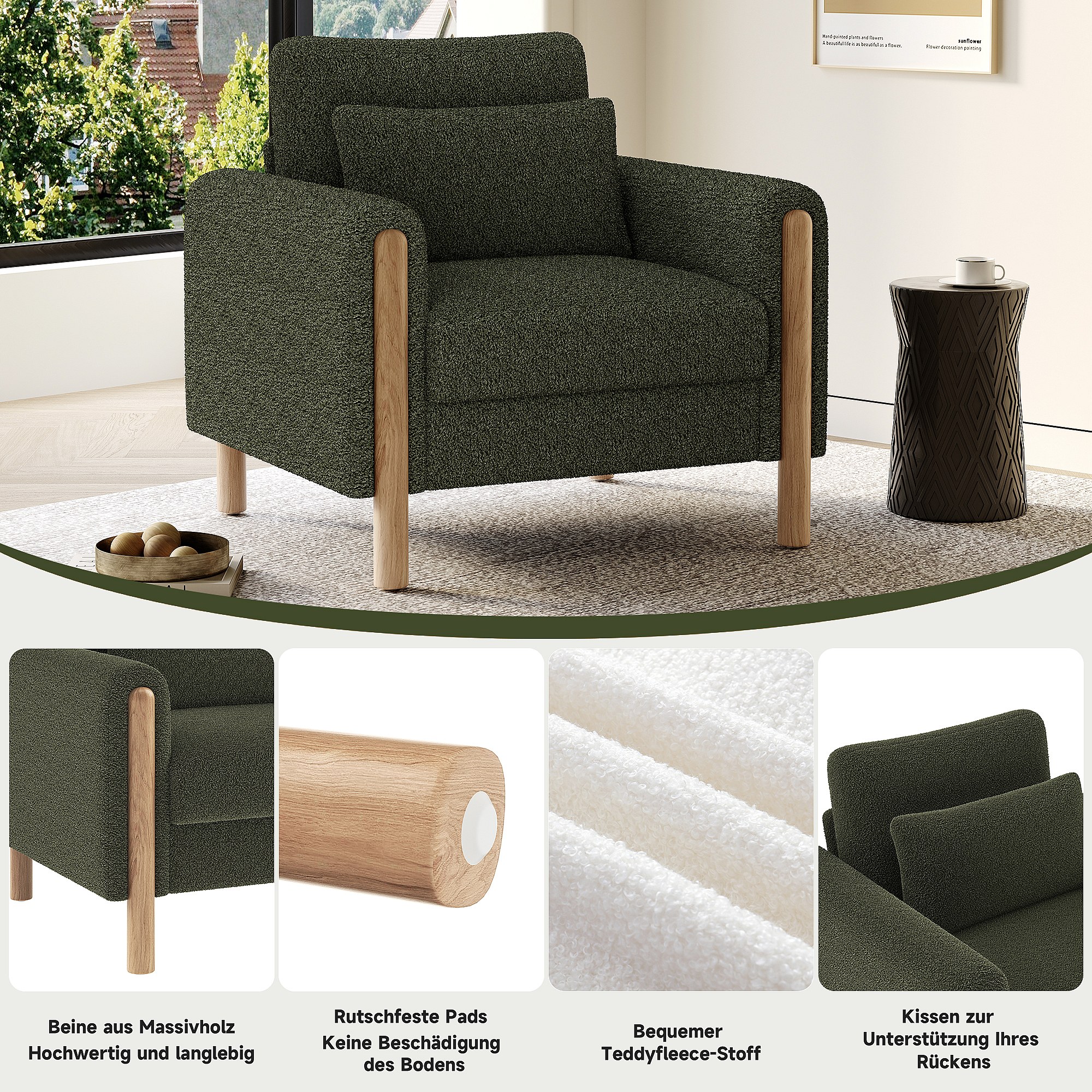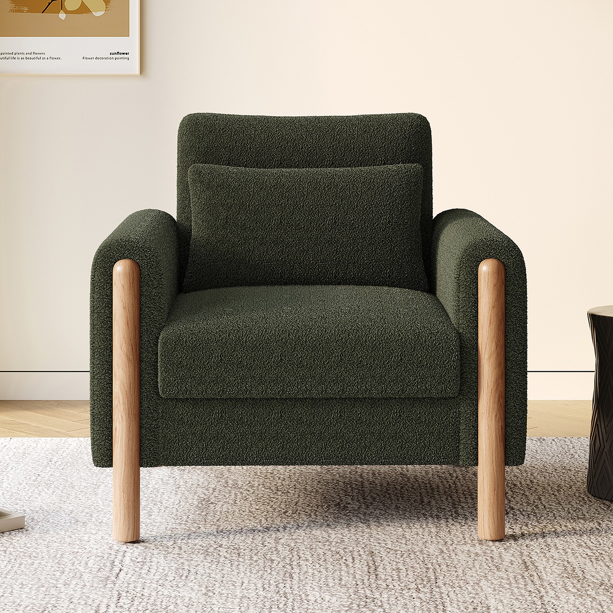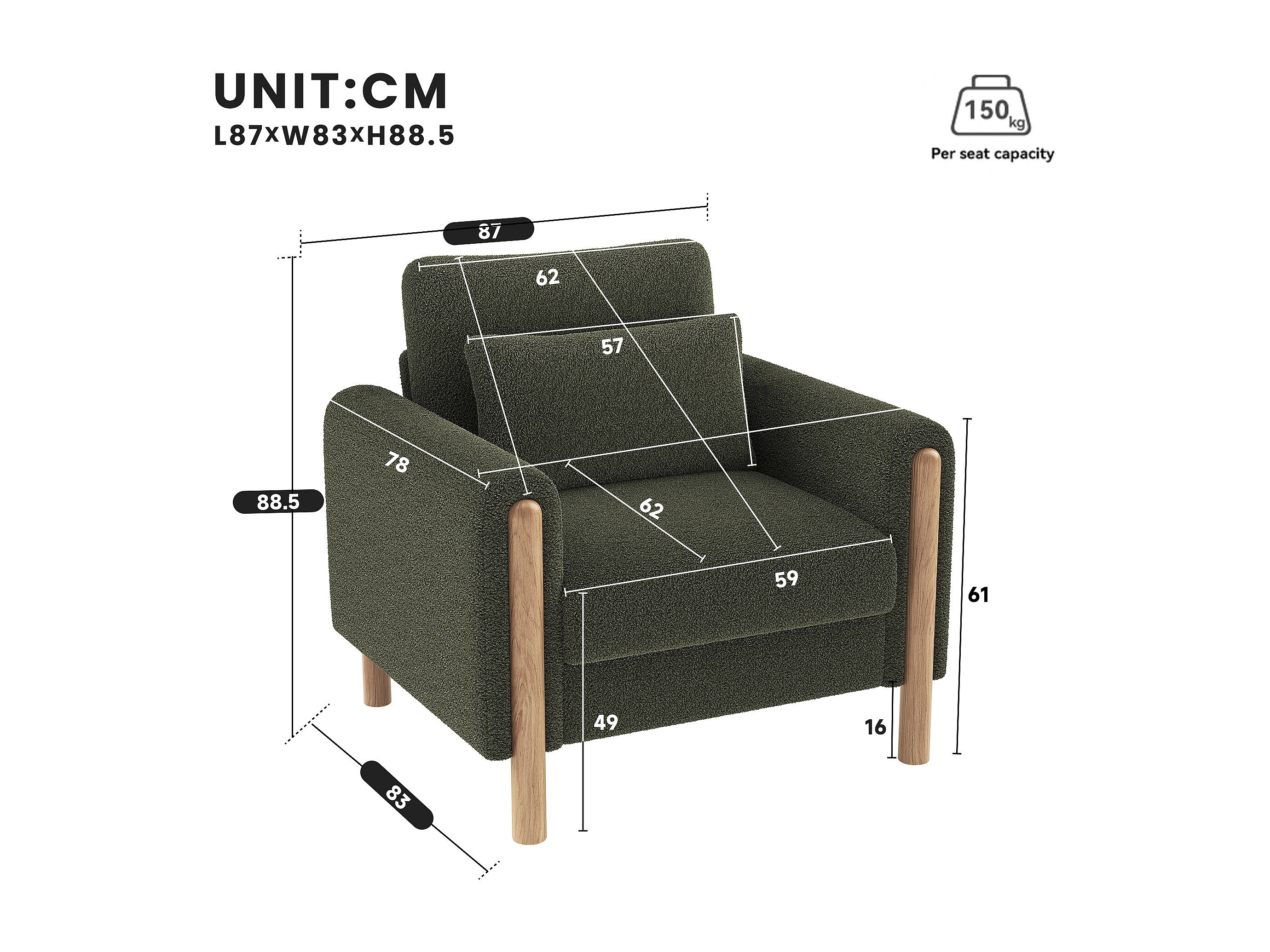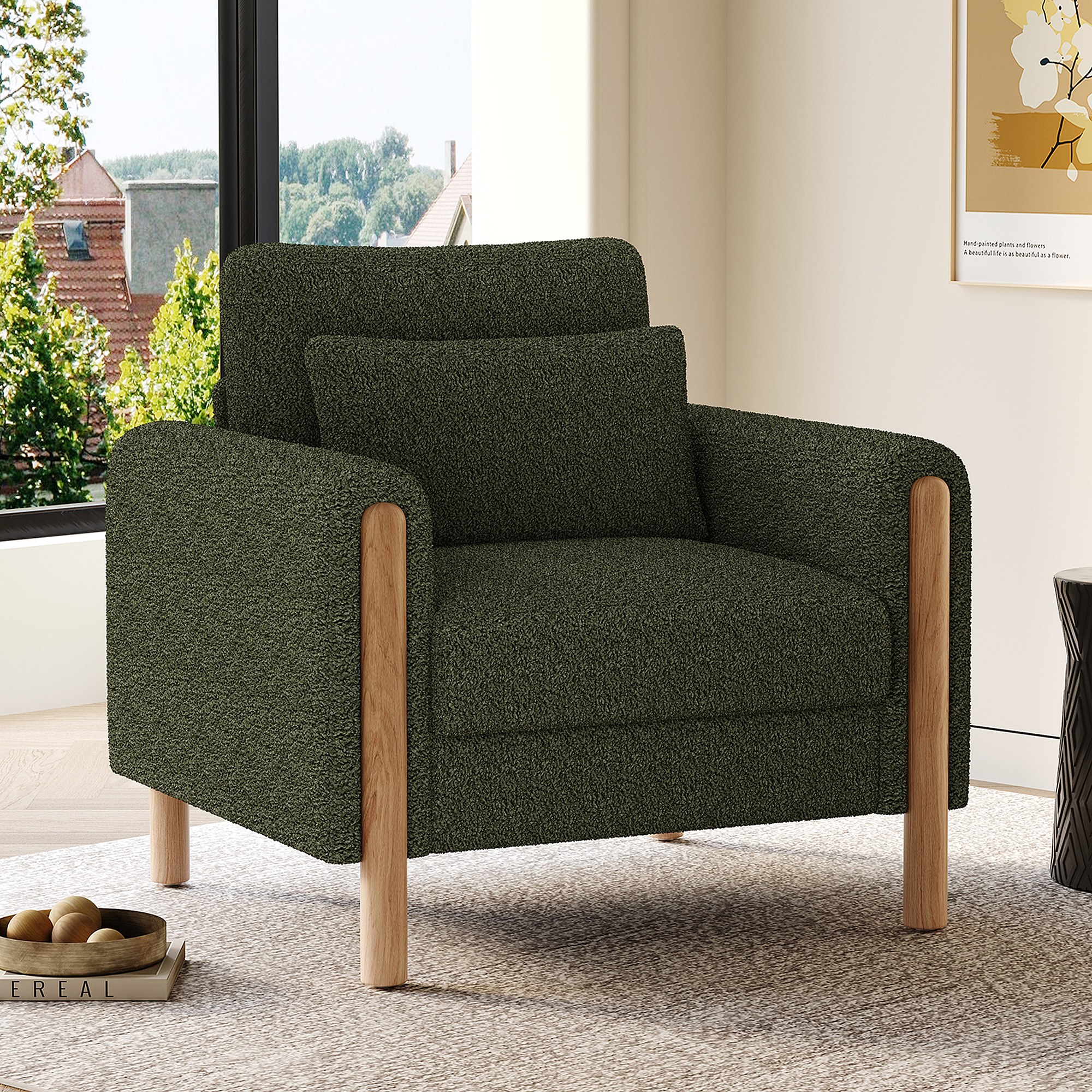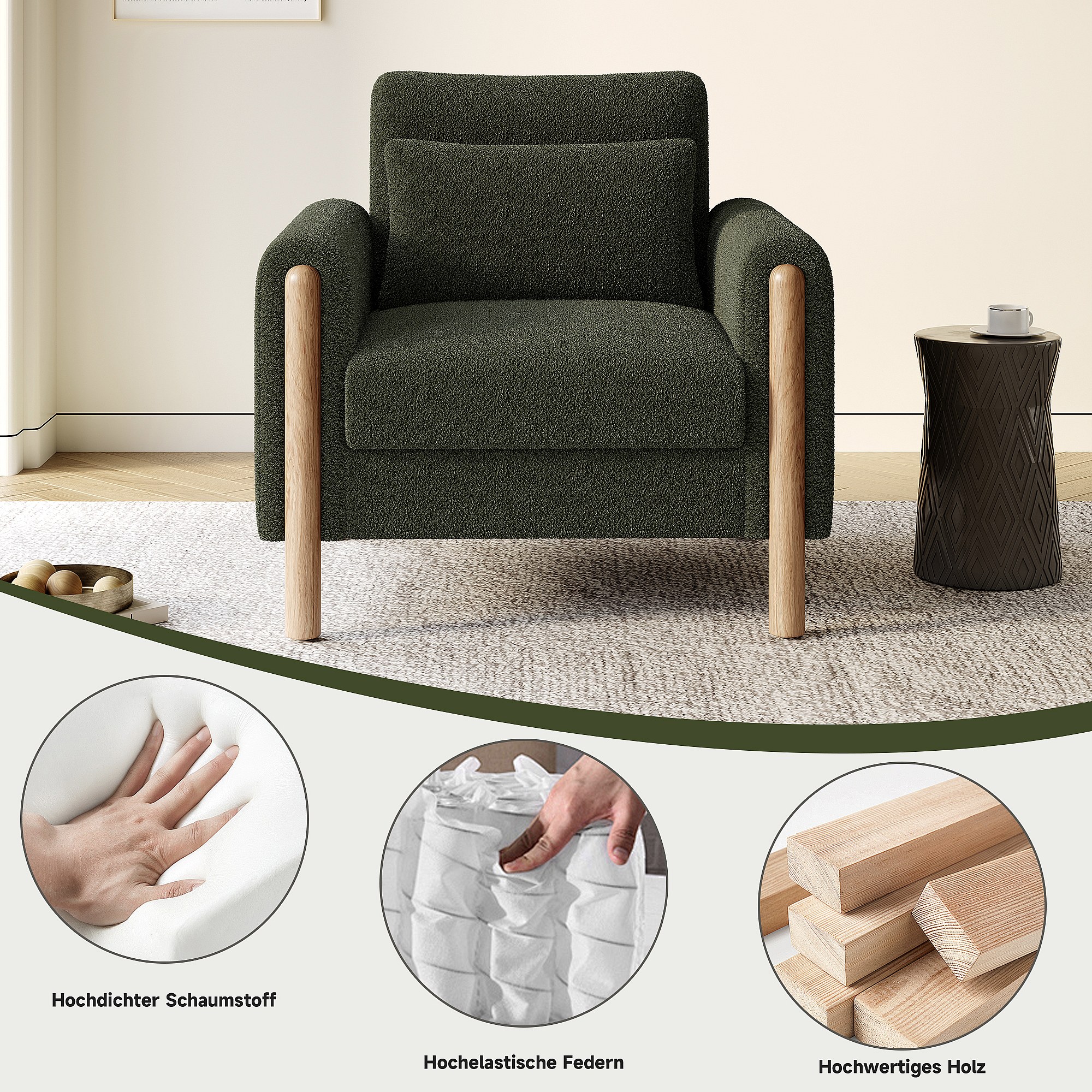 Fauteuil moderne avec coussin épais - 87 x 83 x 88.5 cm - fauteuil simple - velours - vert