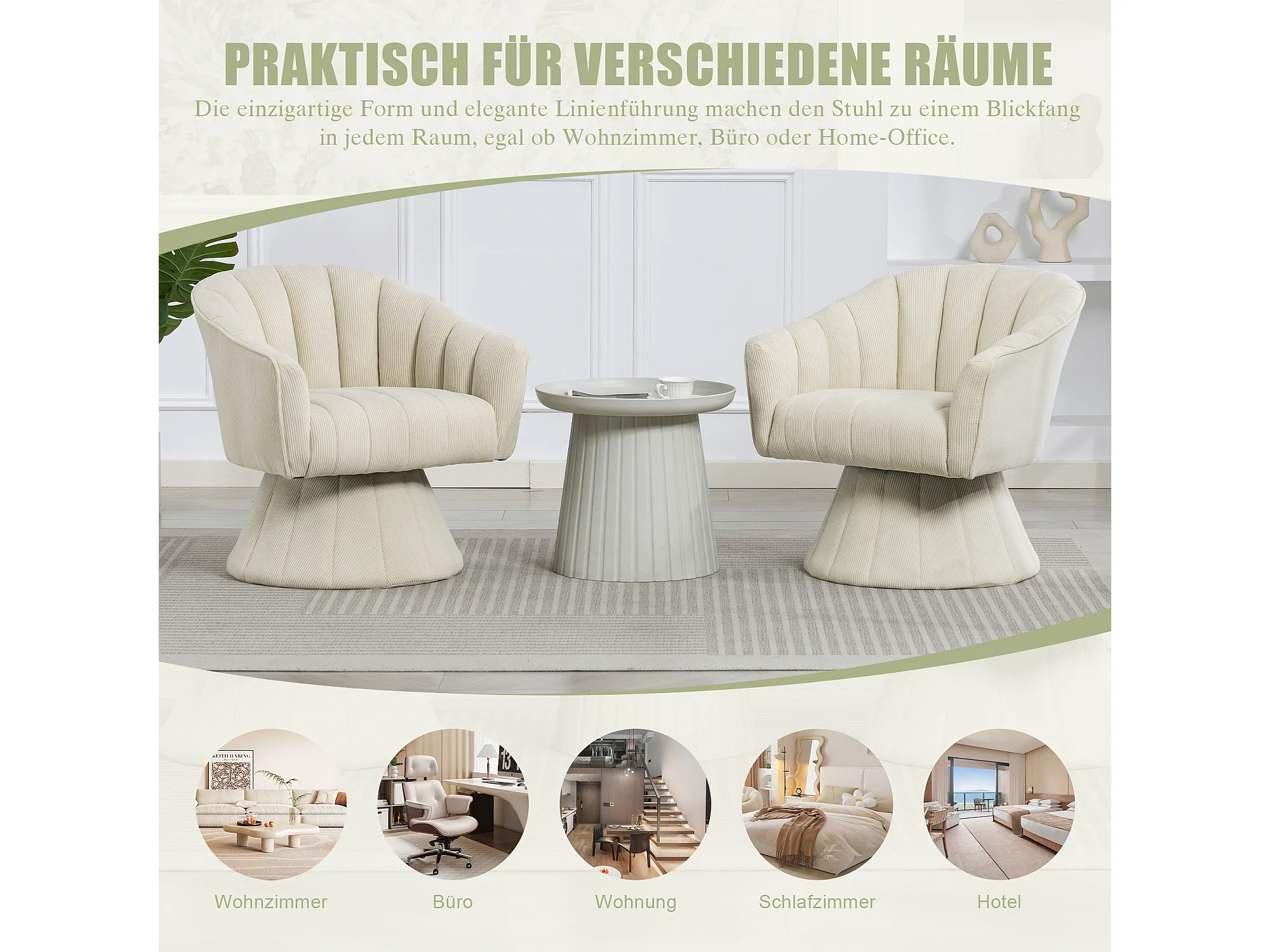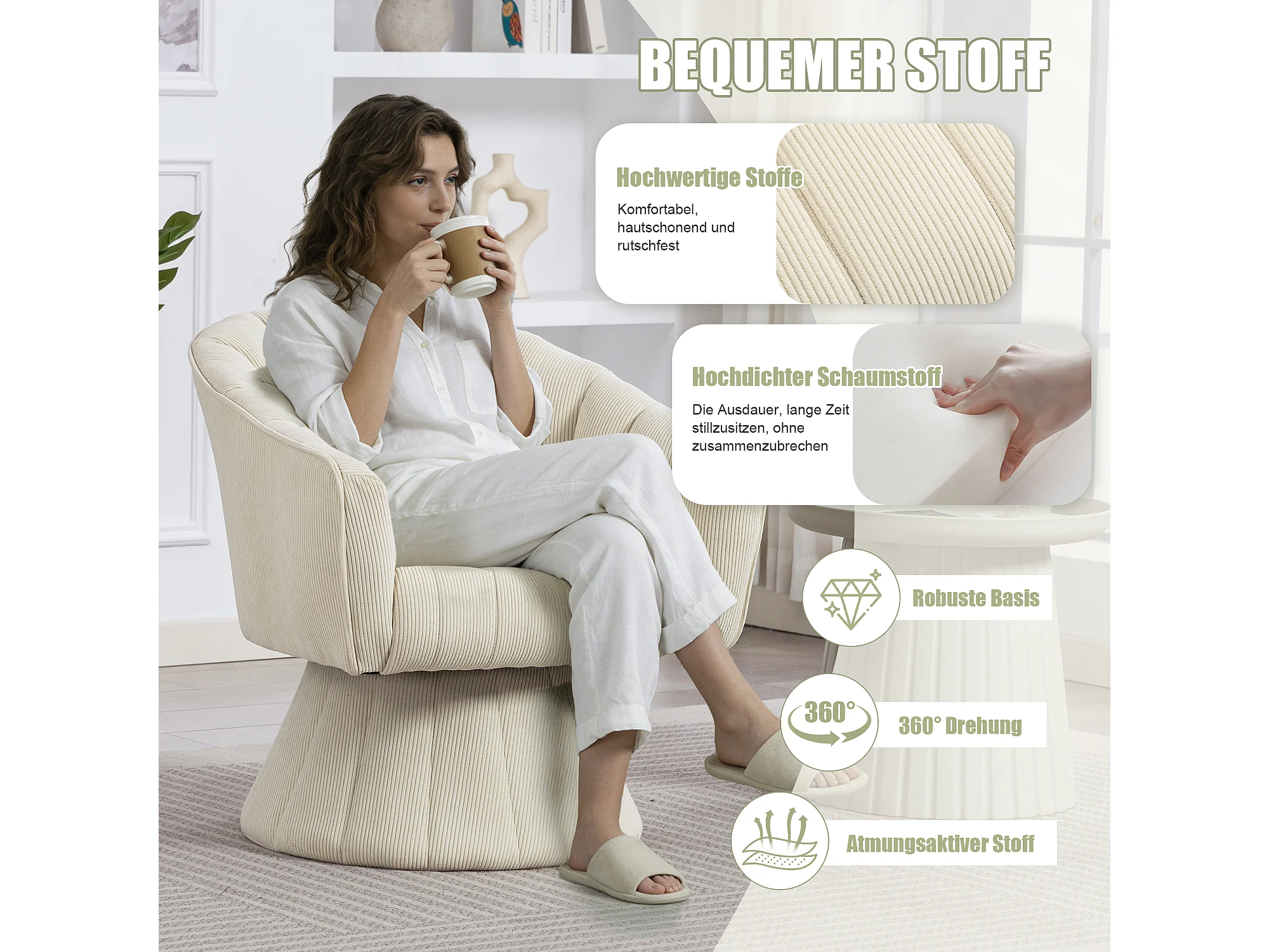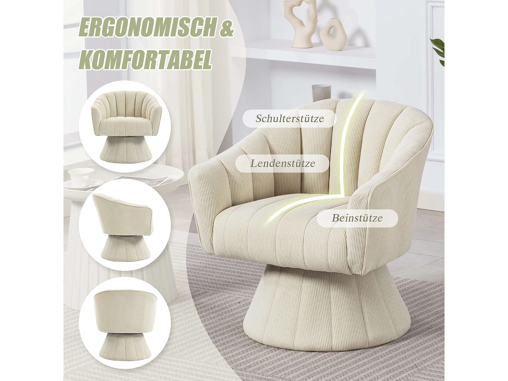 Fauteuil moderne pivotant à 360° - 70 x 66 x 72 cm - avec assise et dossier ergonomiques + accoudoirs - velours - Beige