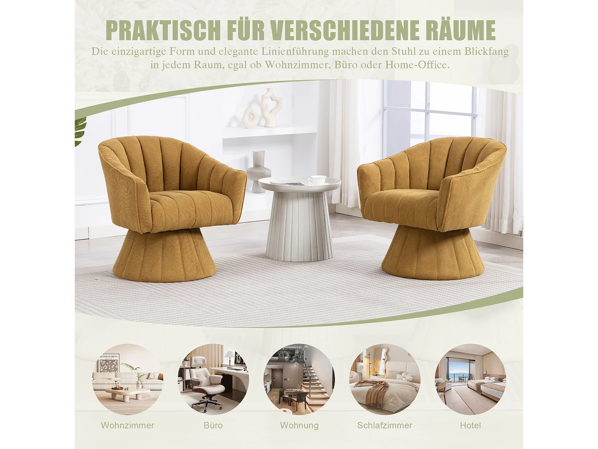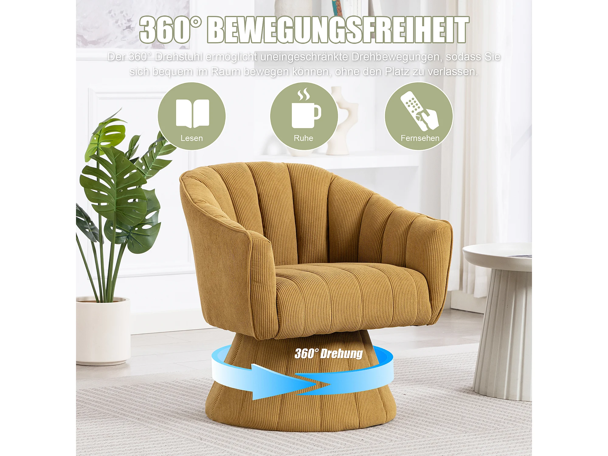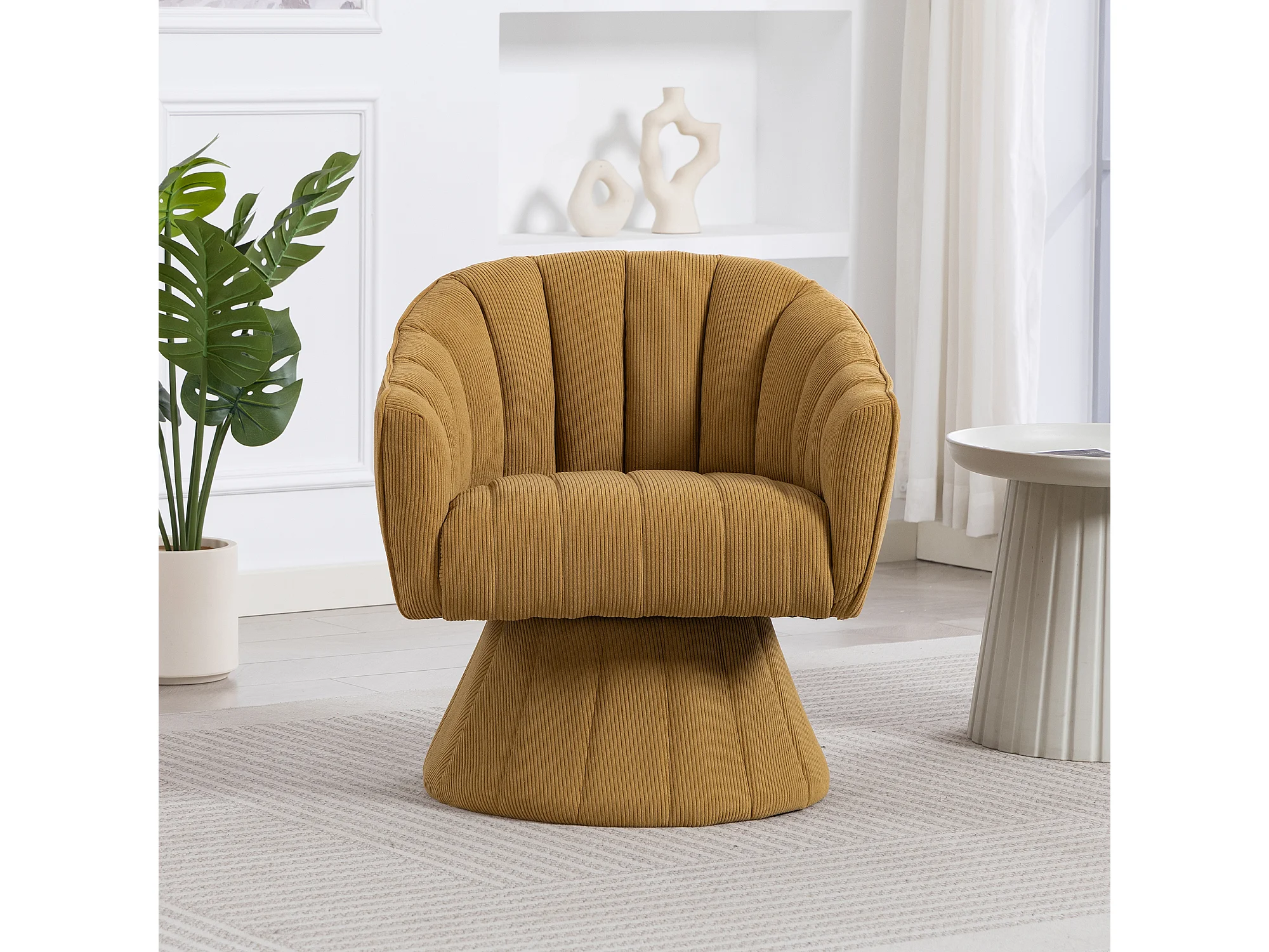Fauteuil moderne pivotant à 360° - 70 x 66 x 72 cm - avec assise et dossier ergonomiques + accoudoirs - velours - Jaune