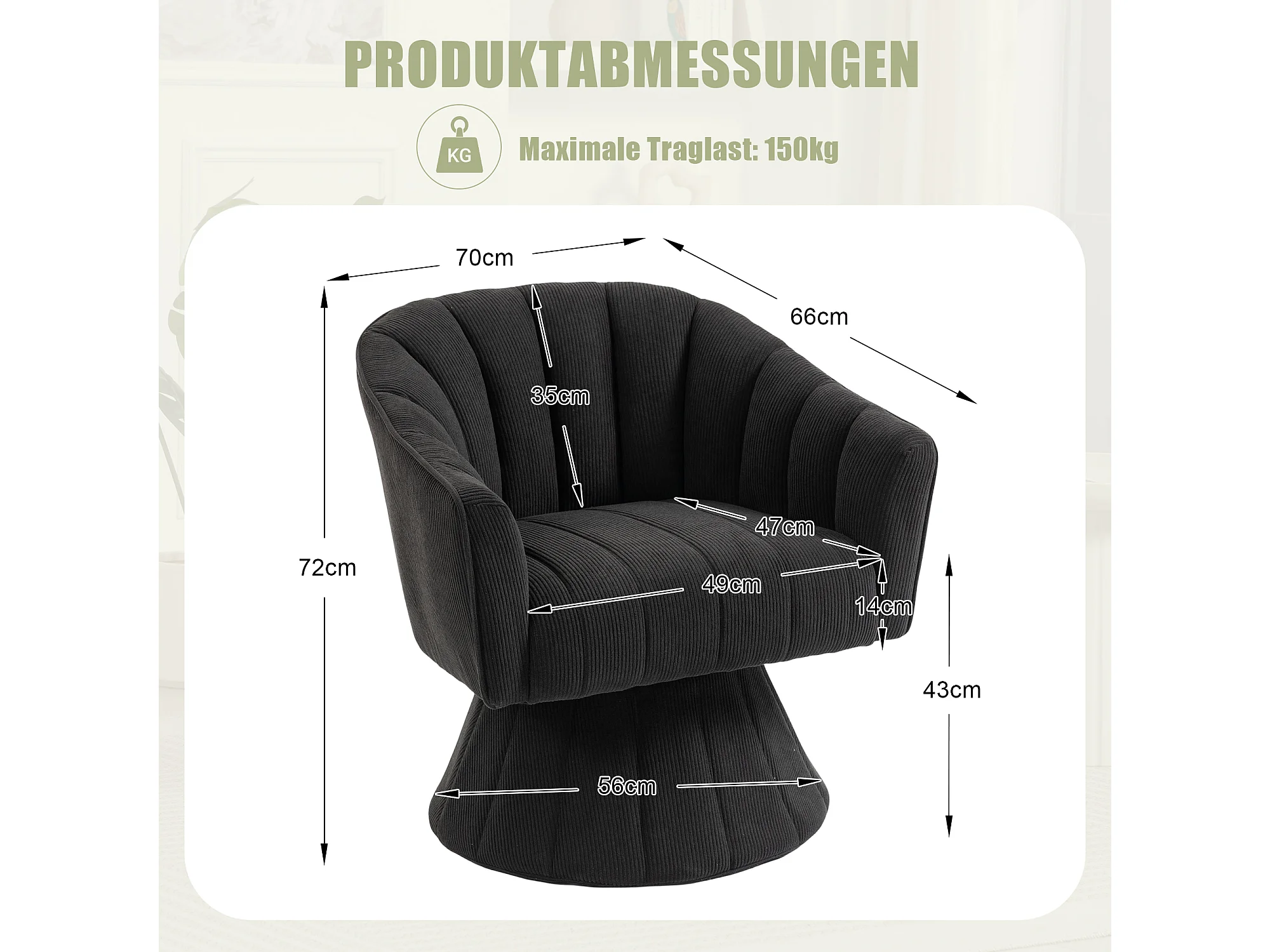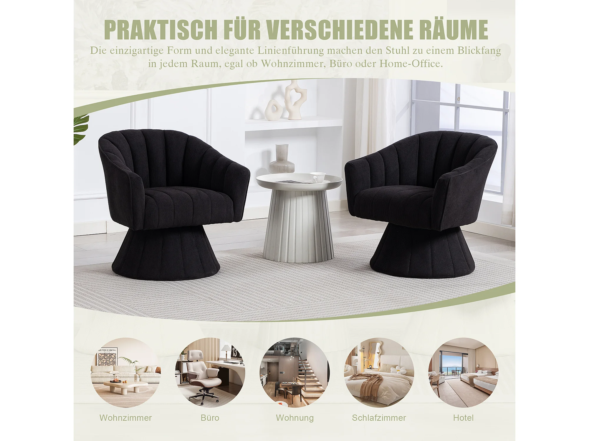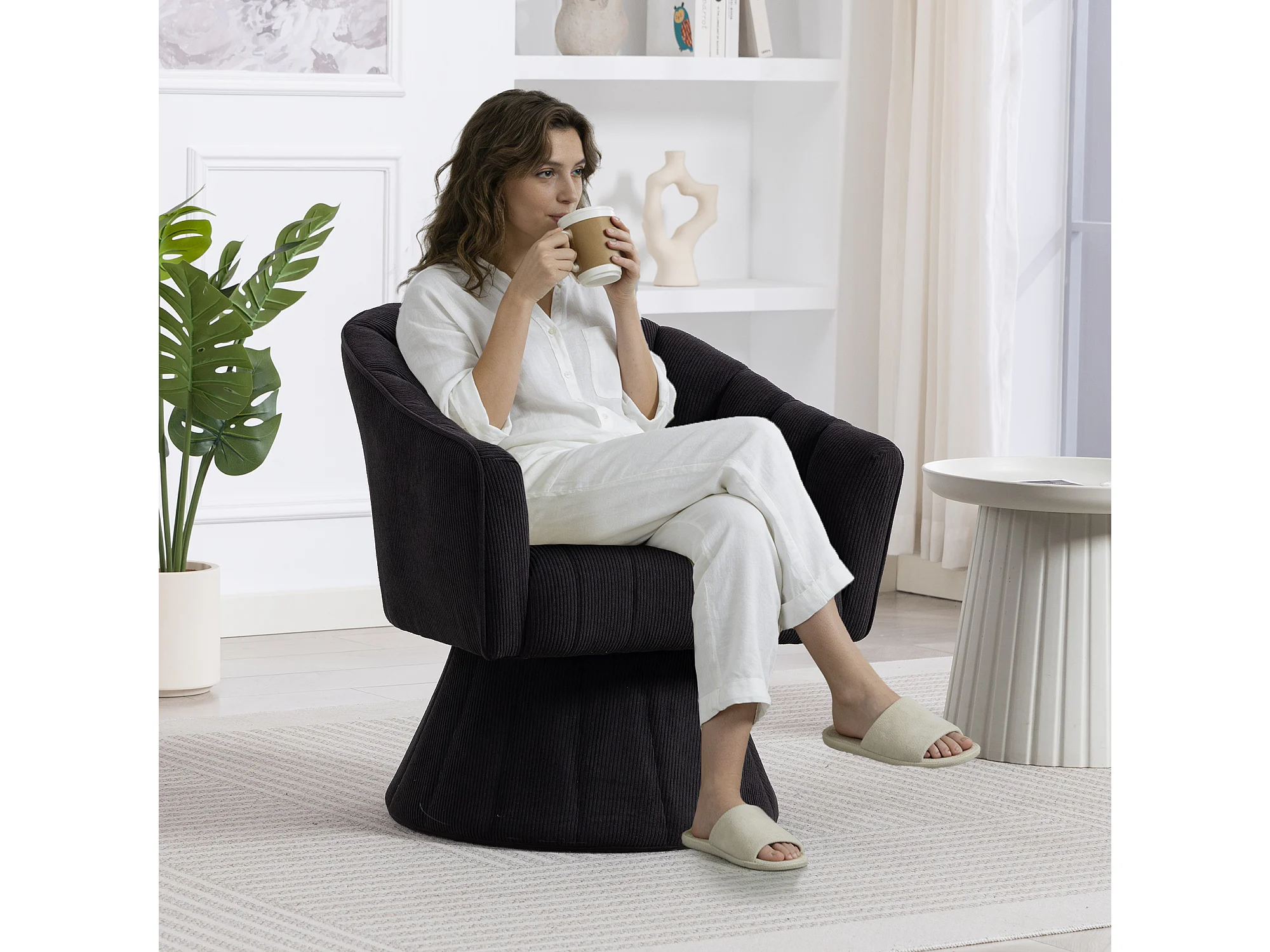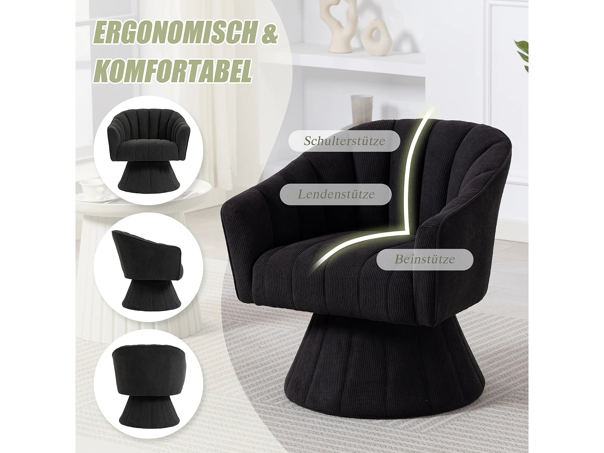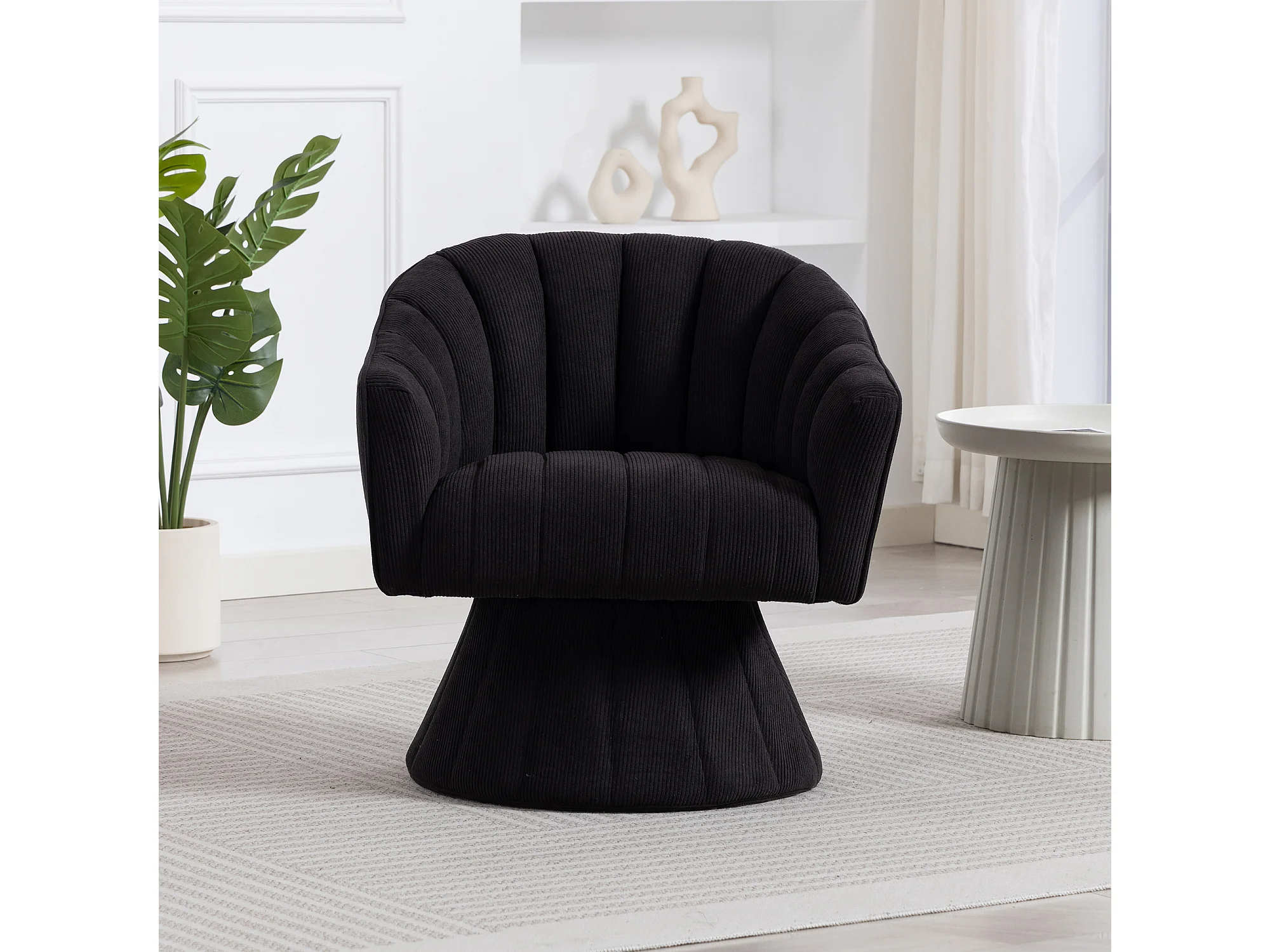 Fauteuil moderne pivotant à 360° - 70 x 66 x 72 cm - avec assise et dossier ergonomiques + accoudoirs - velours - noir