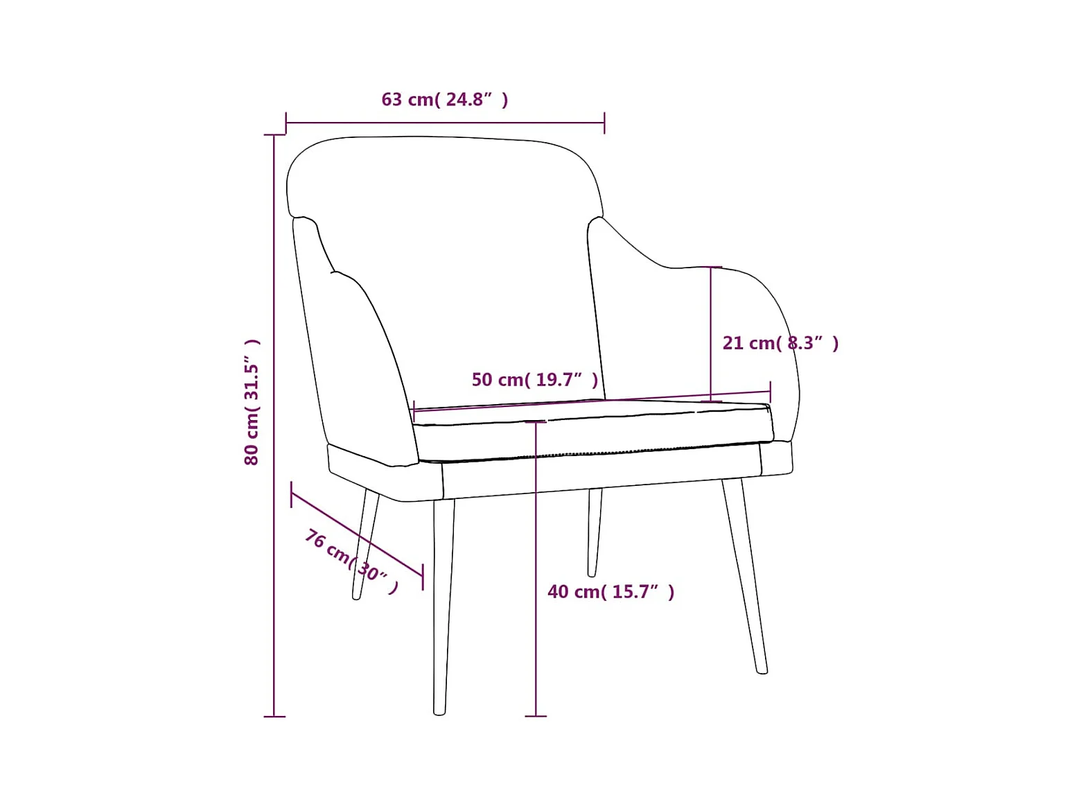 Fauteuil Noir 63x76x80 cm Velours