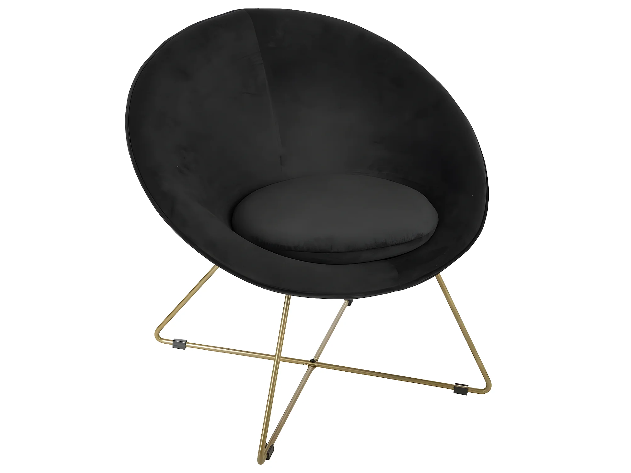 Fauteuil Noir en velours - L. 76 x l. 67 x H. 69 cm