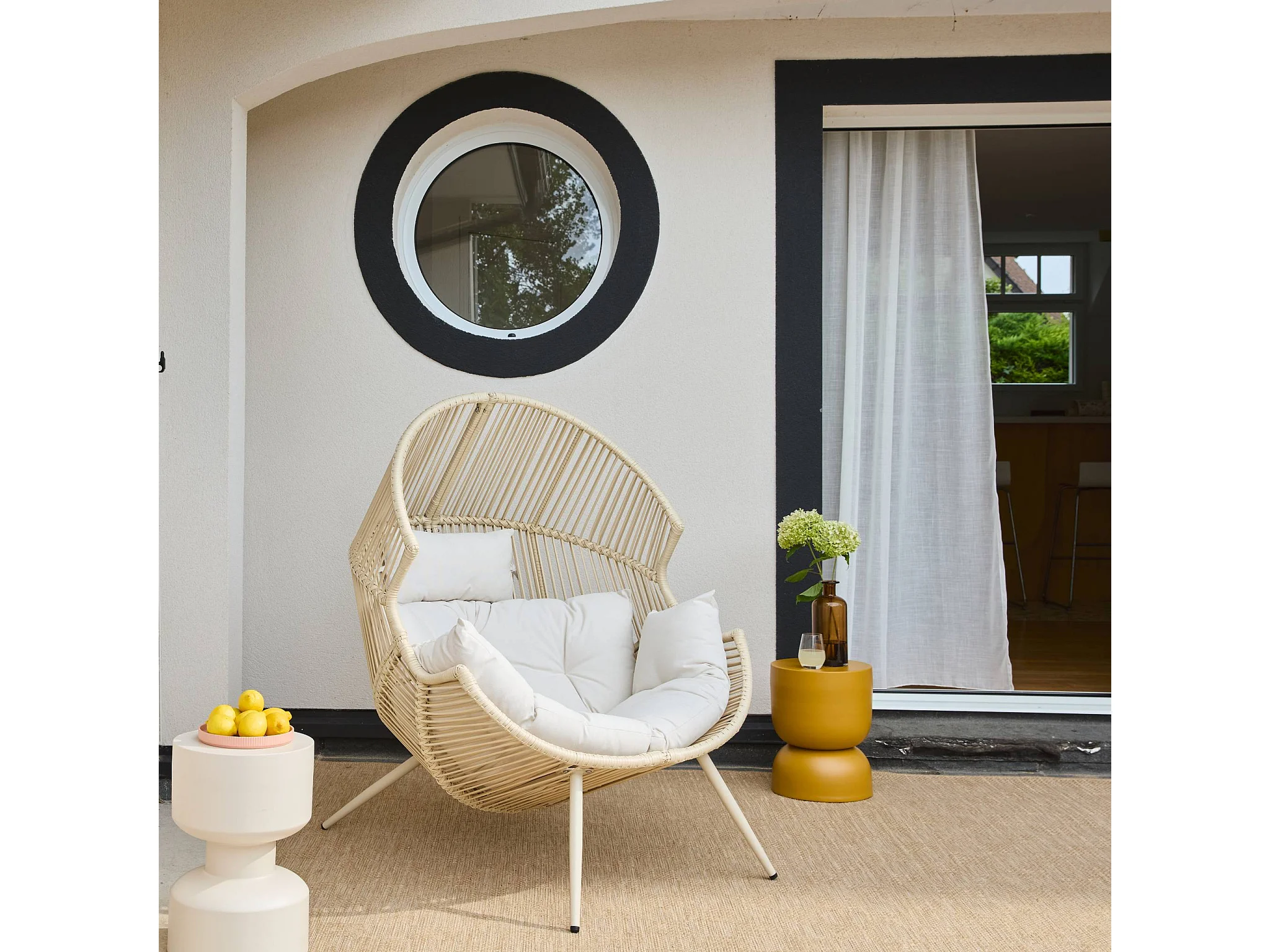 Fauteuil oeuf de jardin acier et résine beige - Salenza