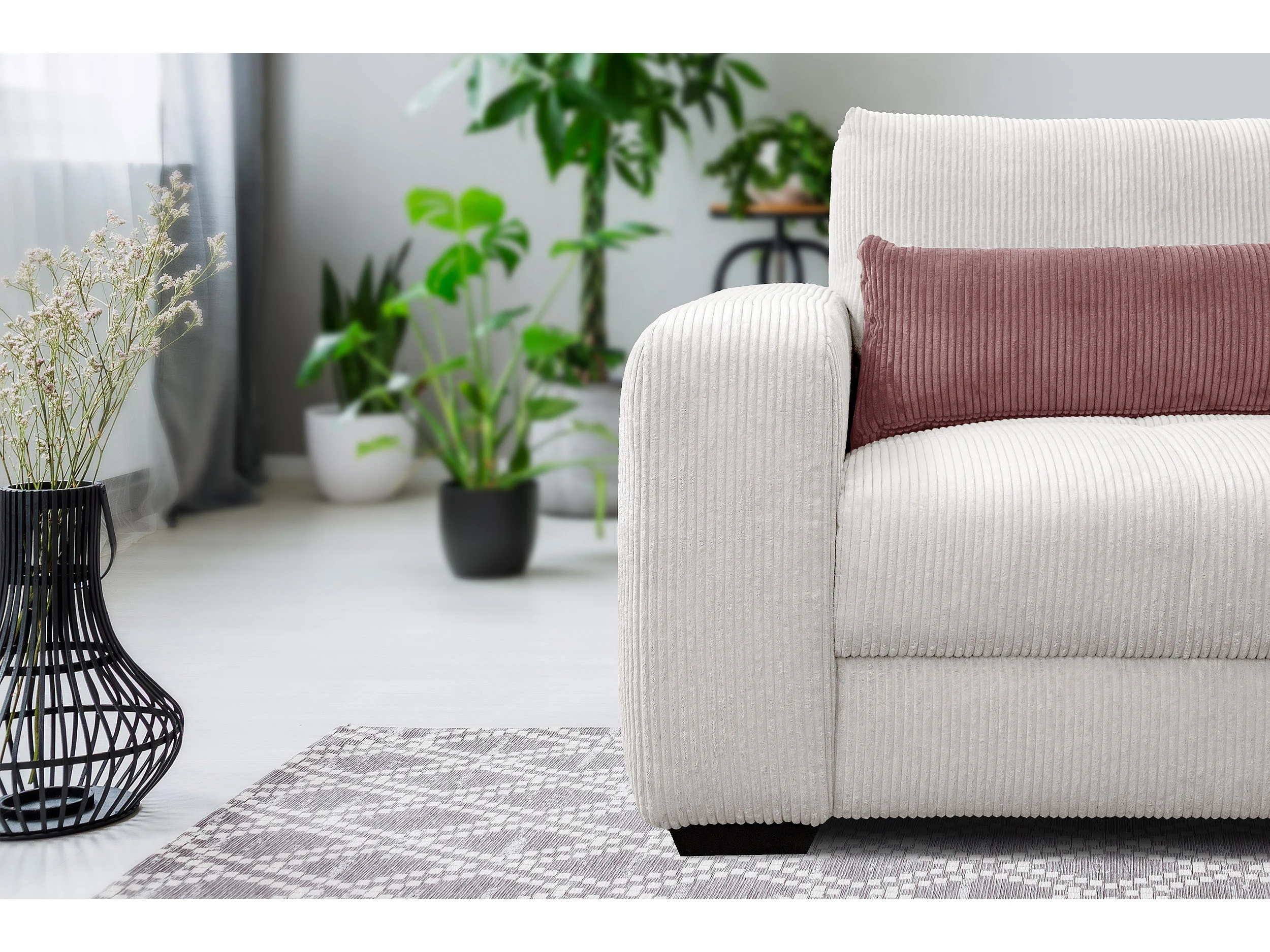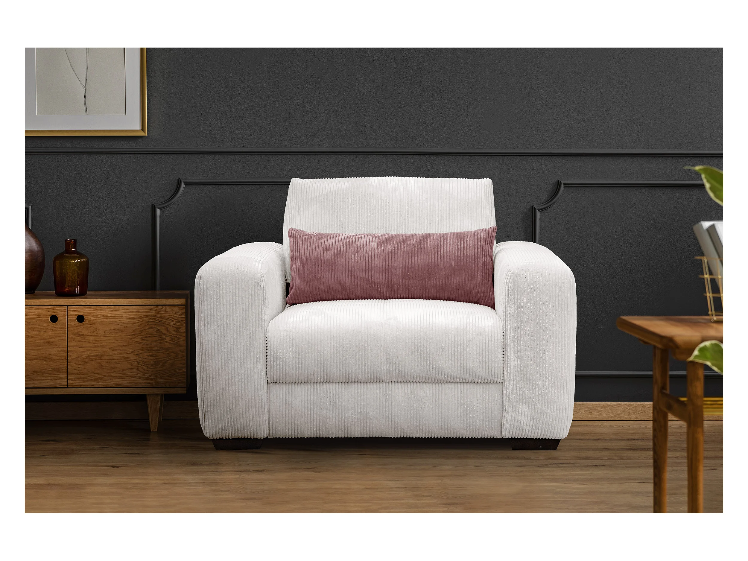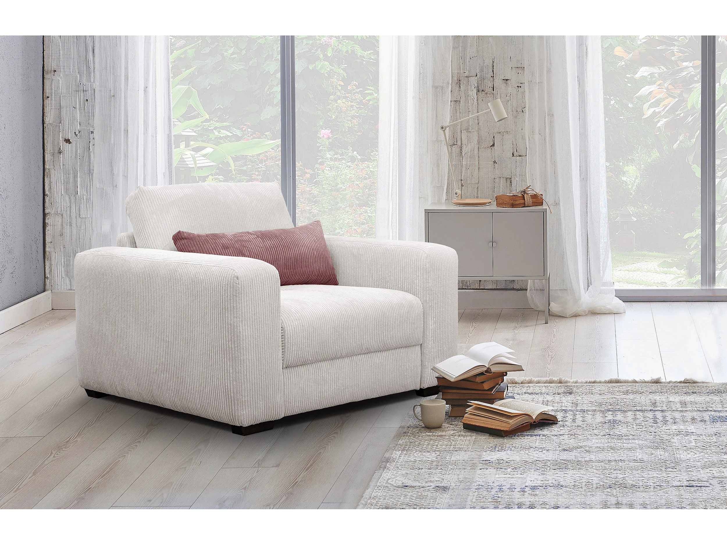 FAUTEUIL OLI en velours côtelé gris clair