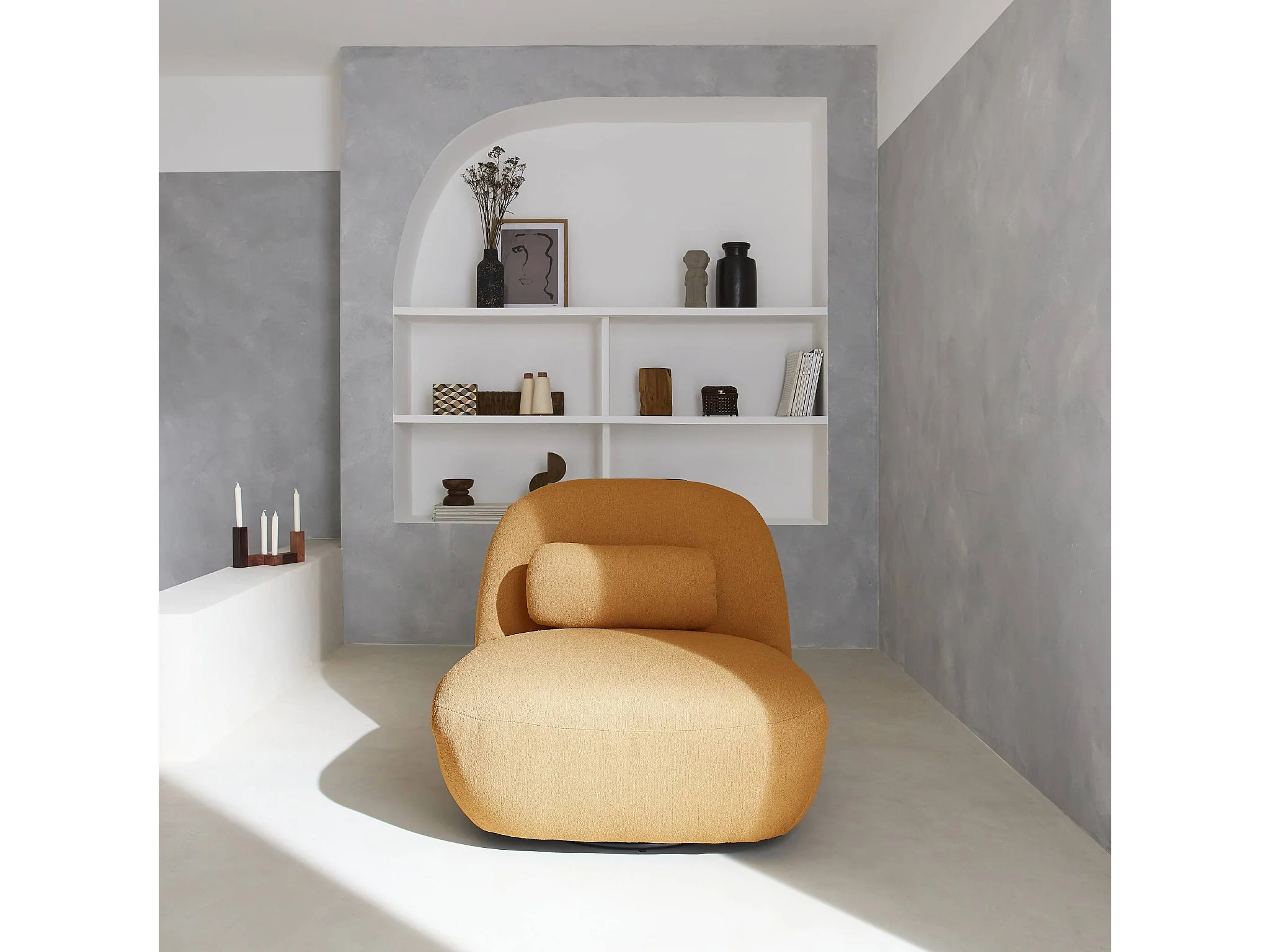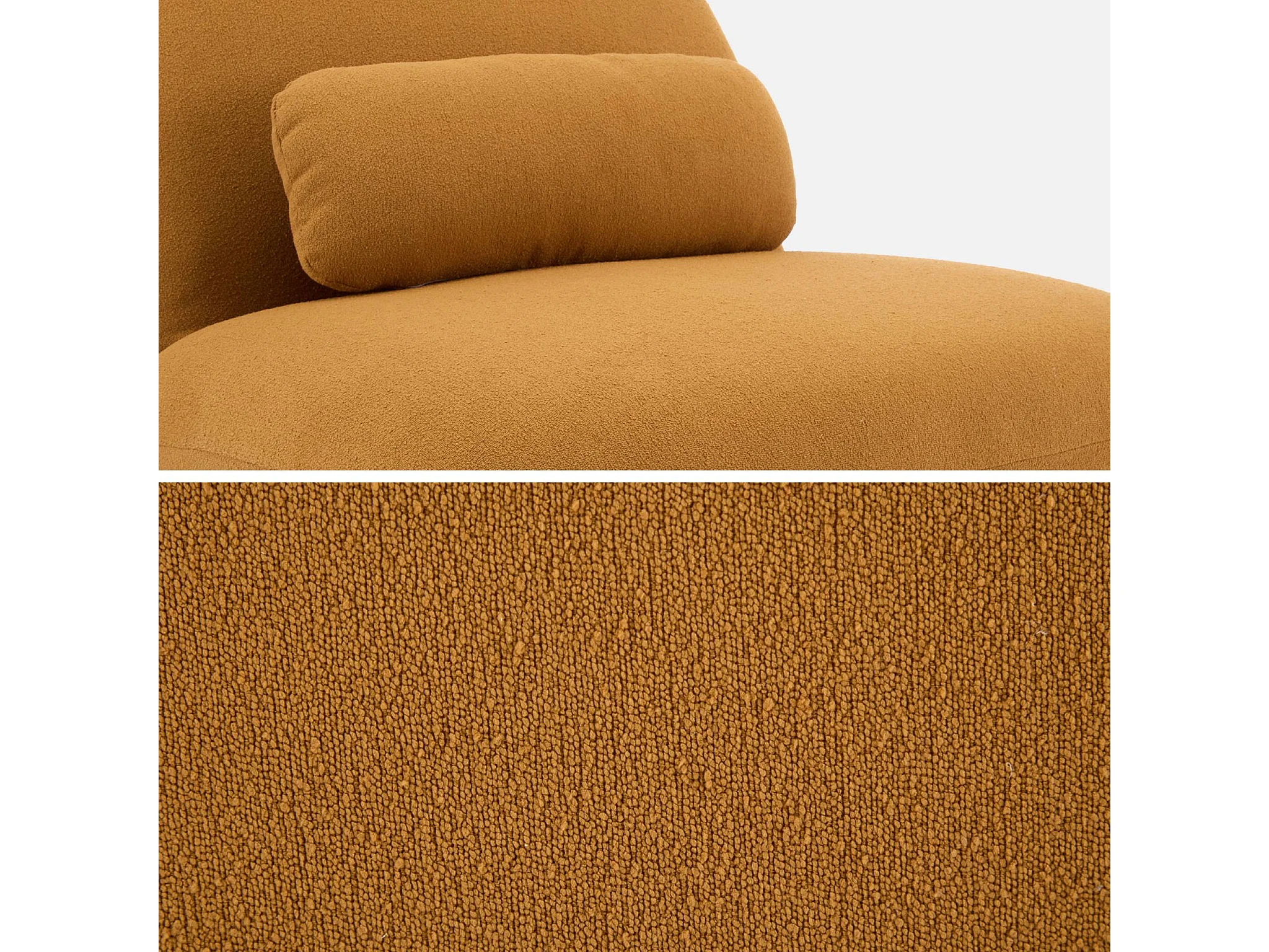 Fauteuil pivotant 360° en bouclette texturée moutarde. piètement en métal noir mat - SPINO