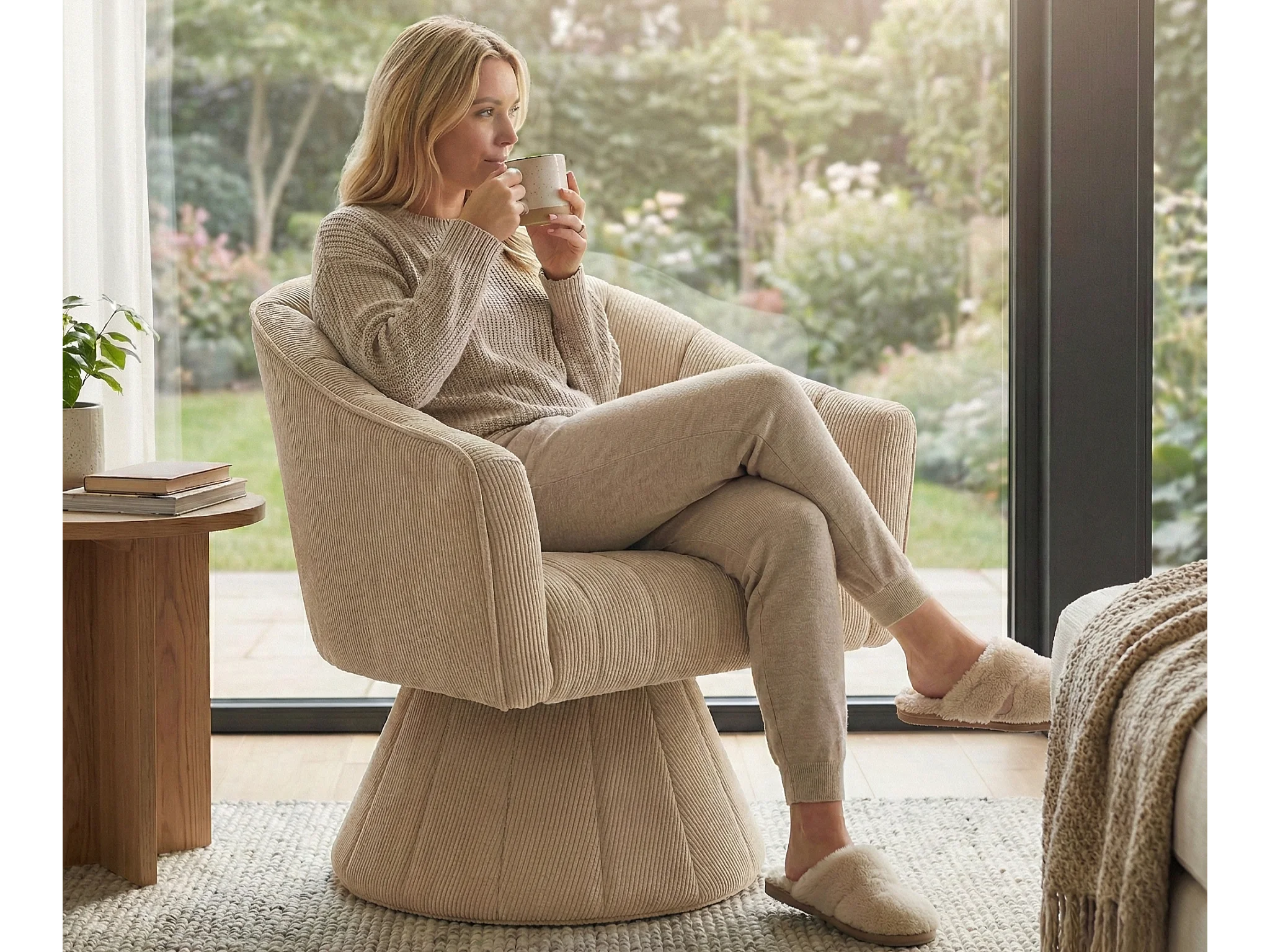 Fauteuil pivotant 360° en velours côtelé - Dossier coque ergonomique - Confort haute densité - Charge max 150 kg - Pour bureau, salon et gaming