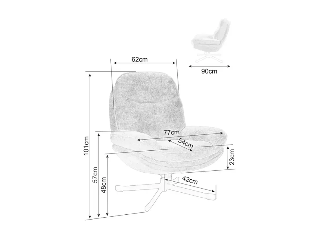 Fauteuil pivotant à 360° en tissu moelleux sans accoudoirs gris NALAK