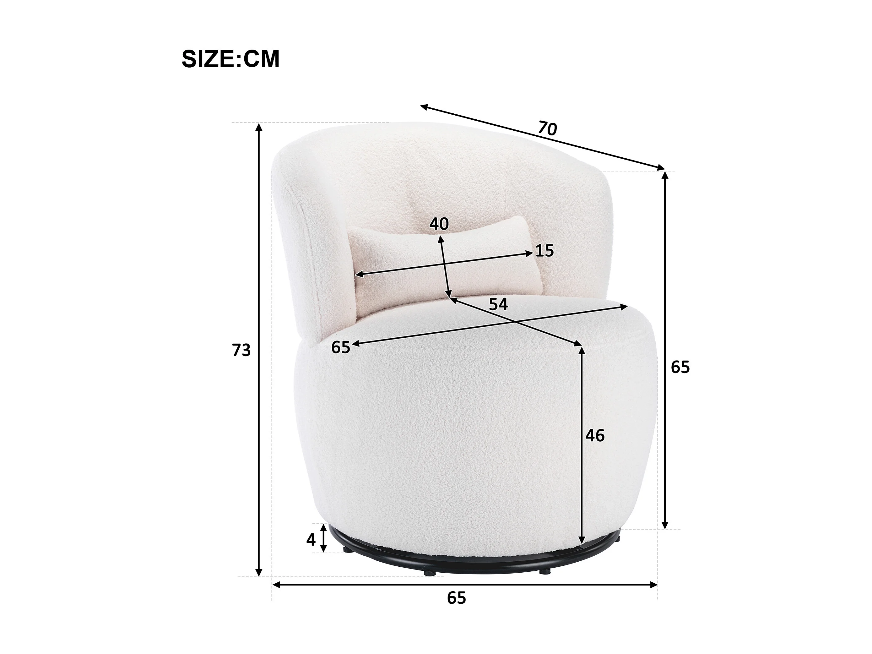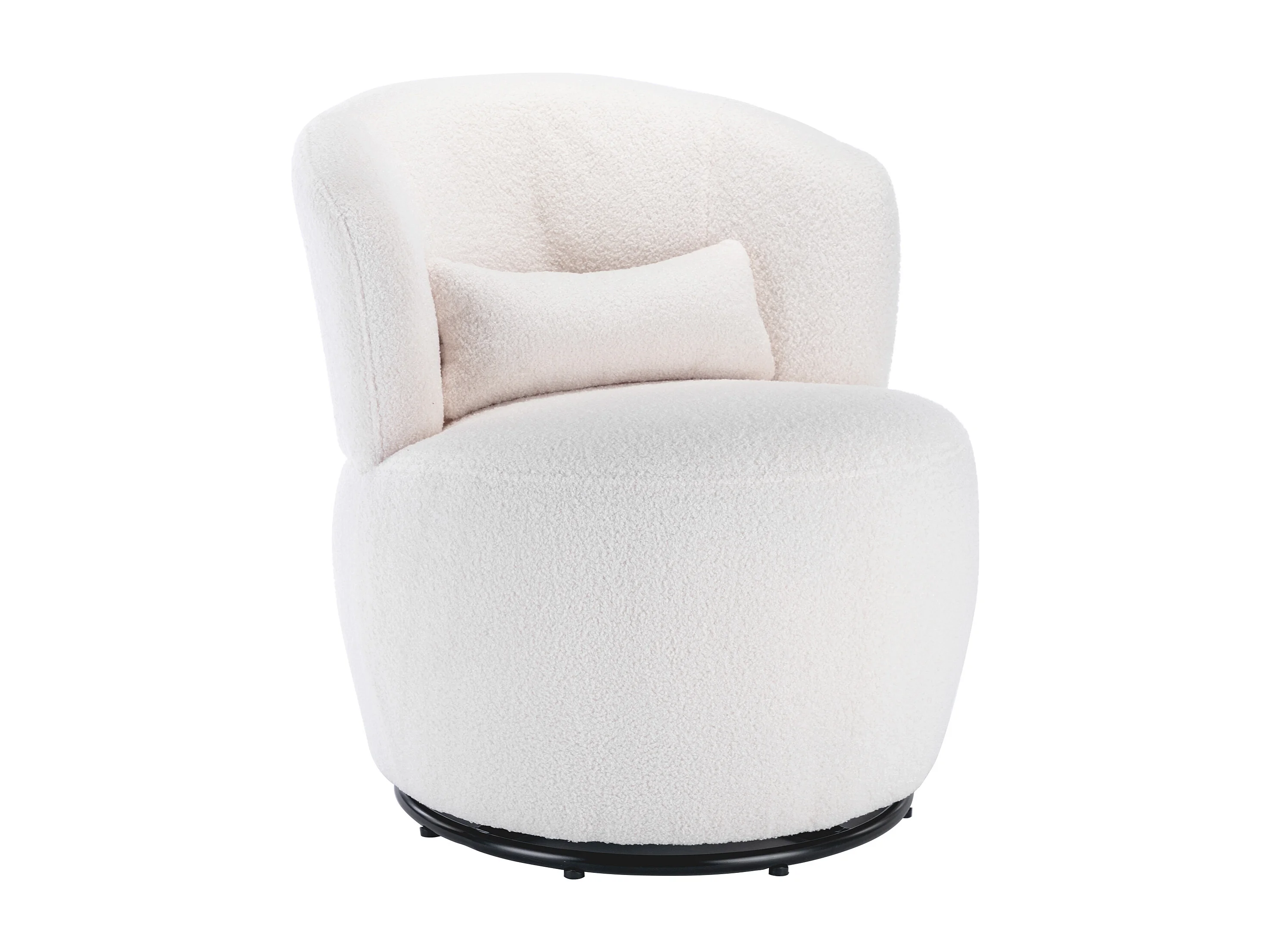 Fauteuil pivotant avec coussin lombaire - Tissu teddy - Blanc