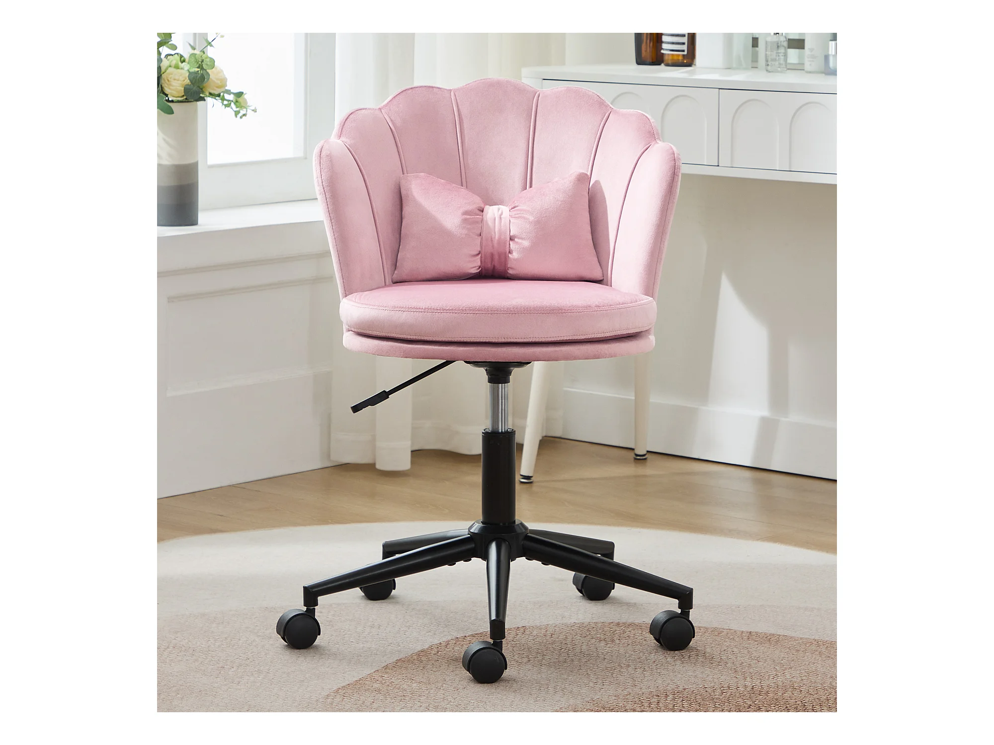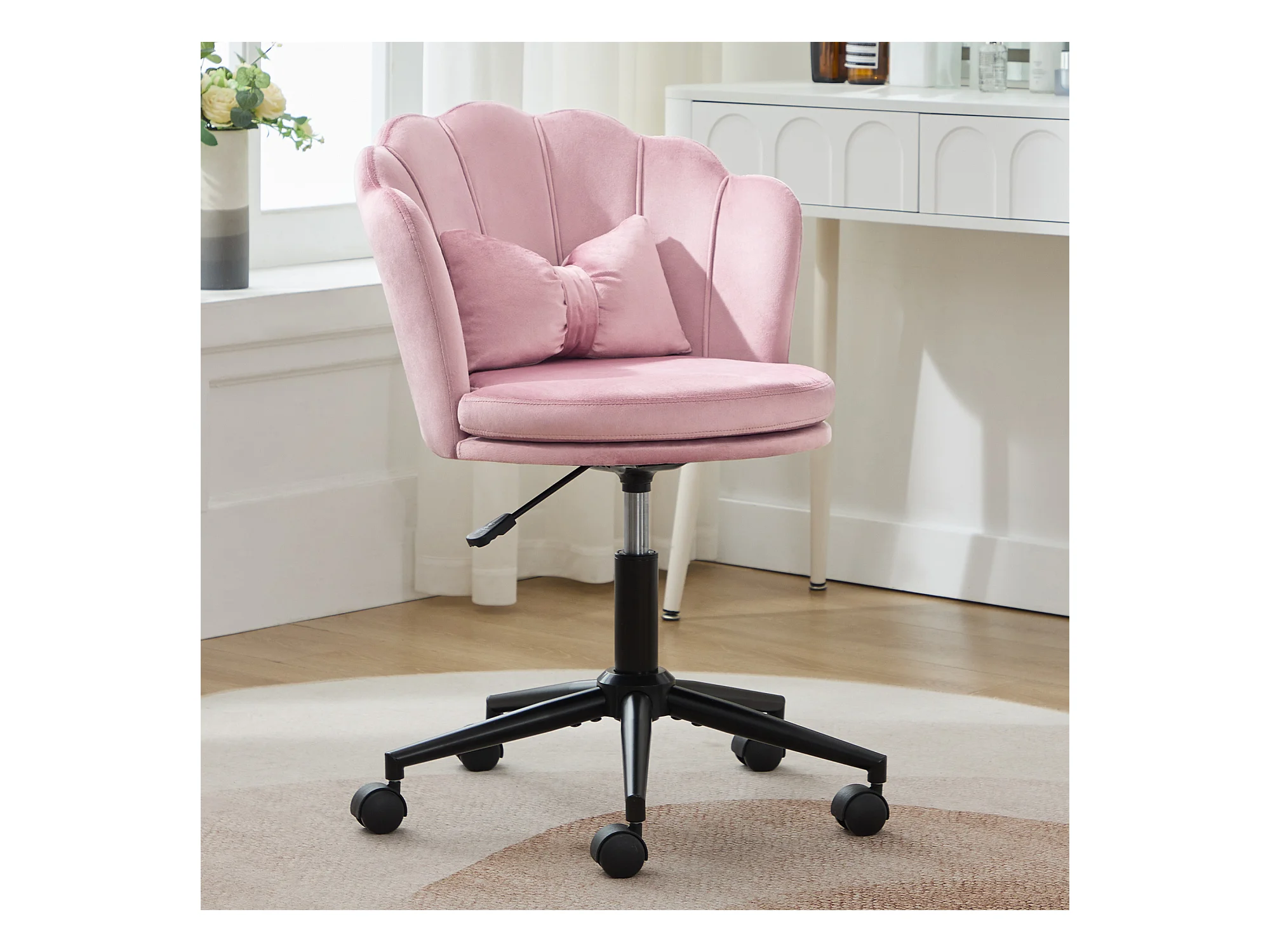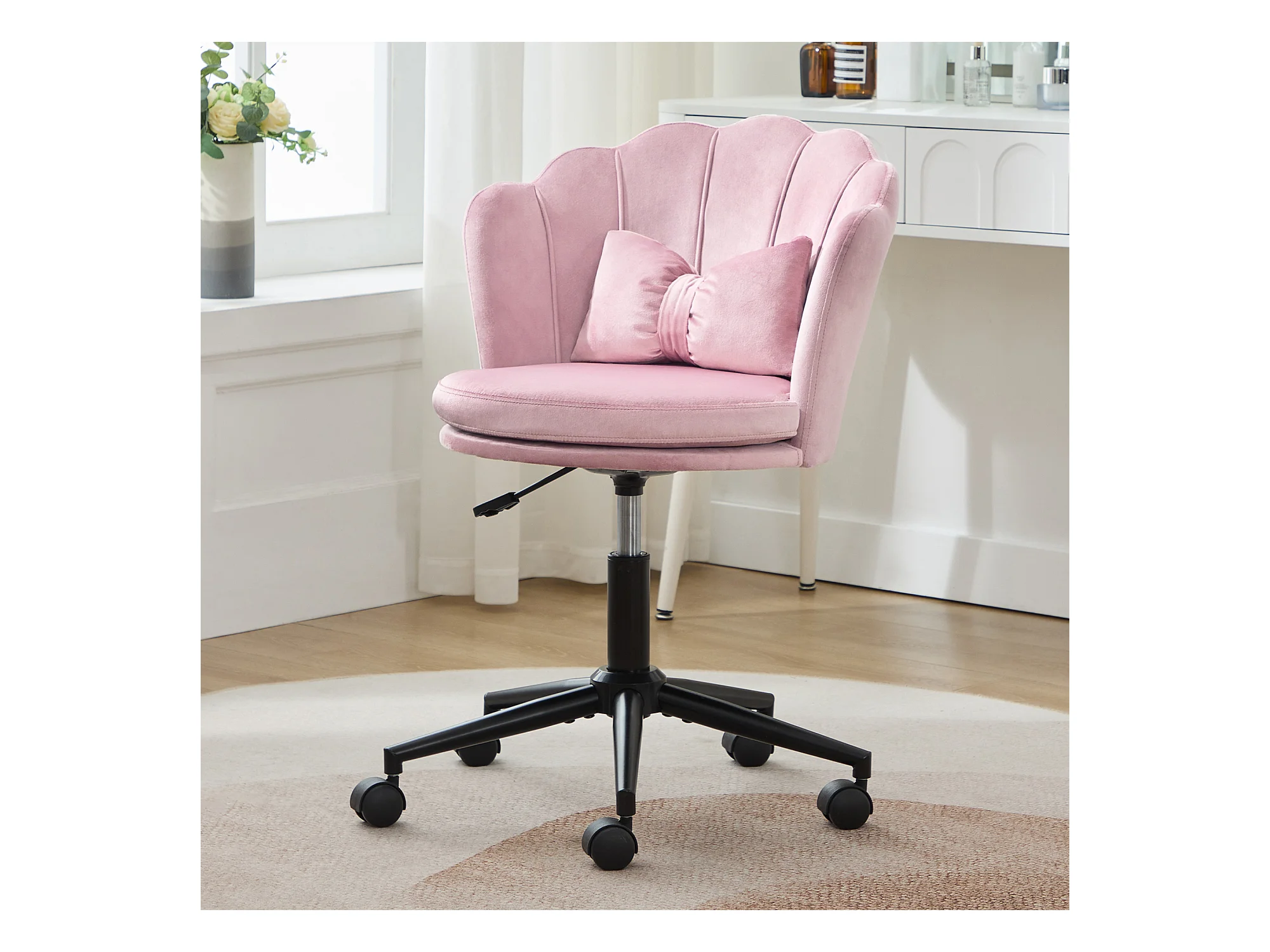 Fauteuil pivotant avec hauteur réglable - Dossier en forme de pétale - 55 x 42 x 73-83 cm - Velours - Rose