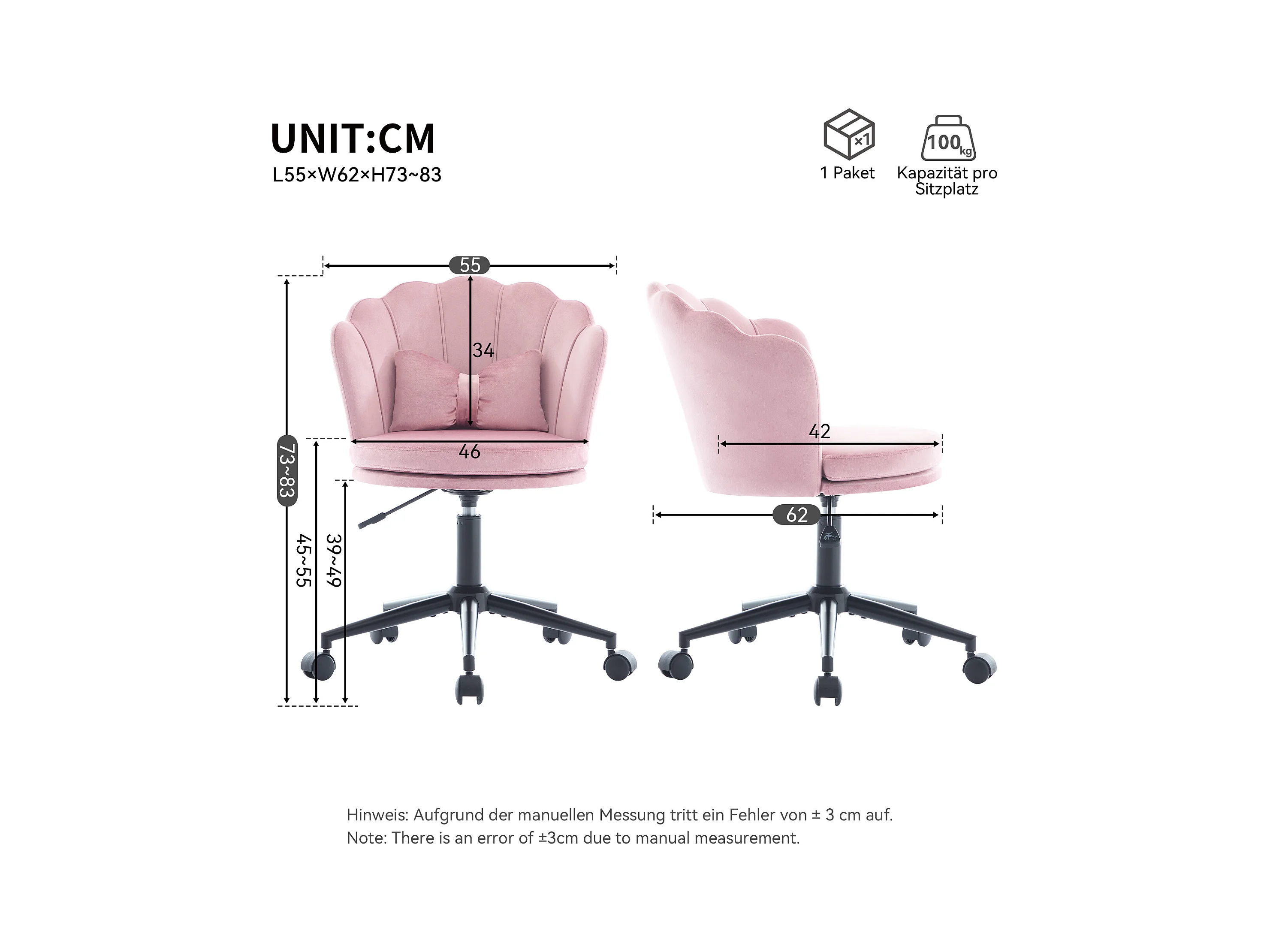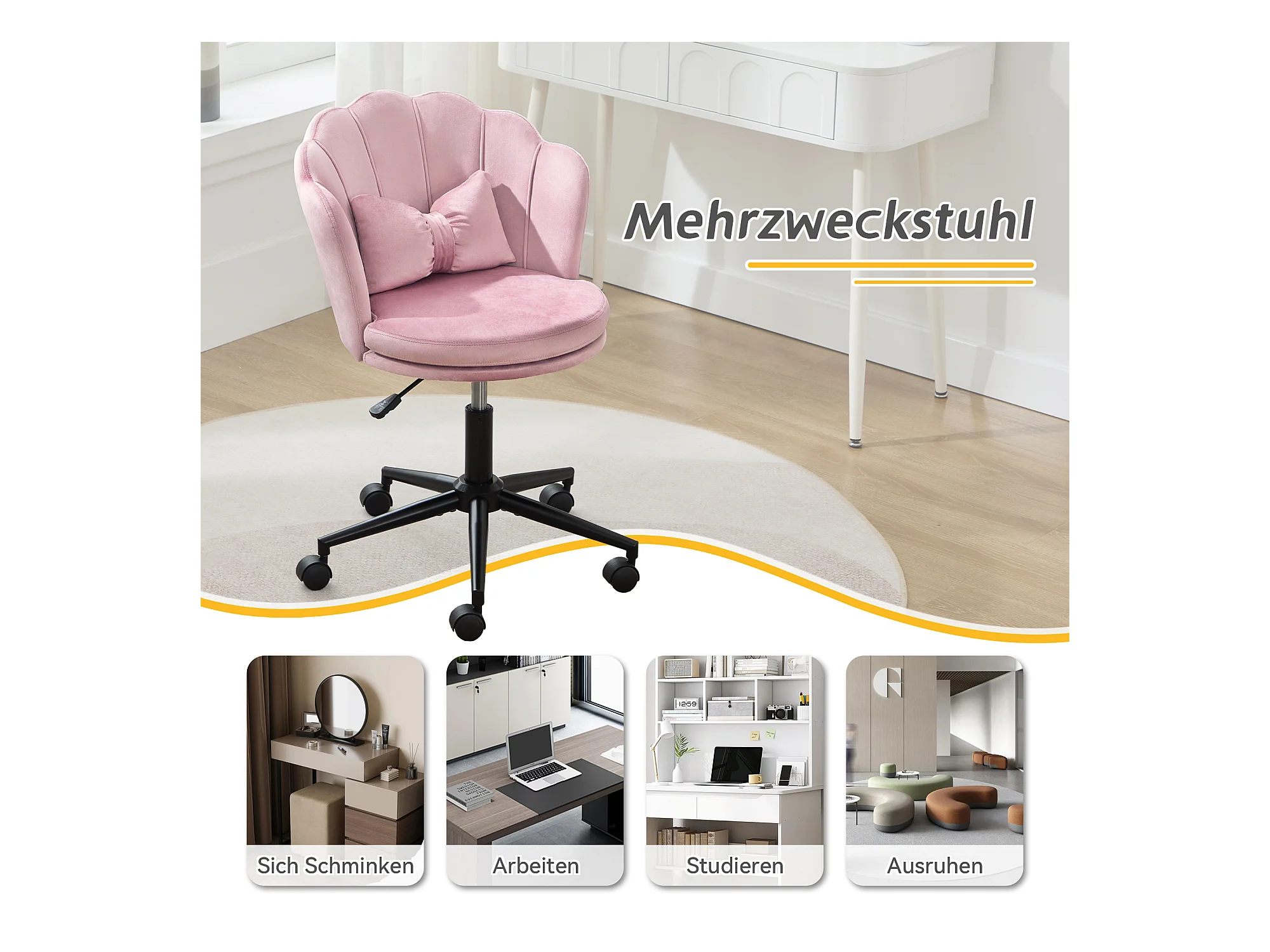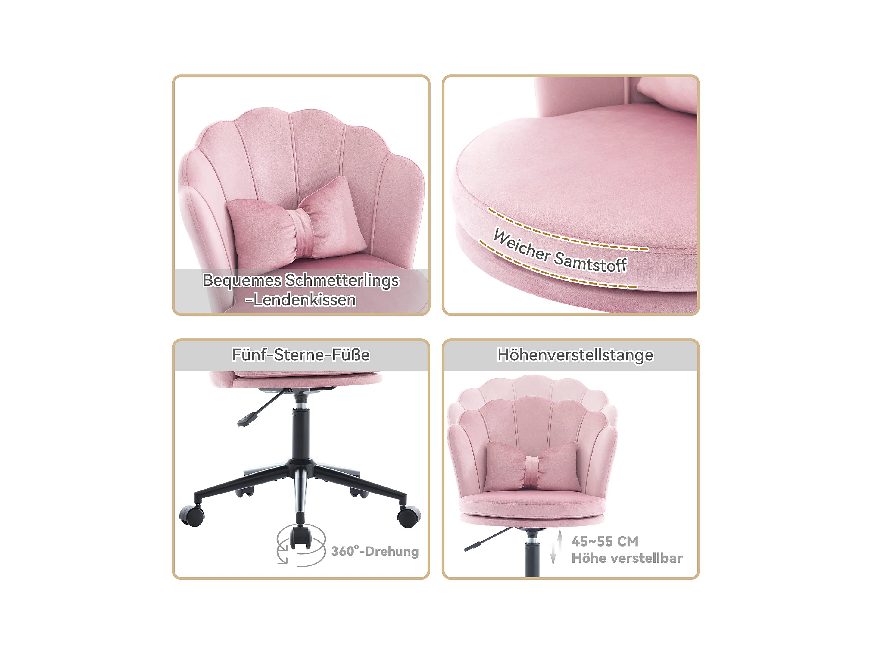 Fauteuil pivotant avec hauteur réglable - Dossier en forme de pétale - 55 x 42 x 73-83 cm - Velours - Rose