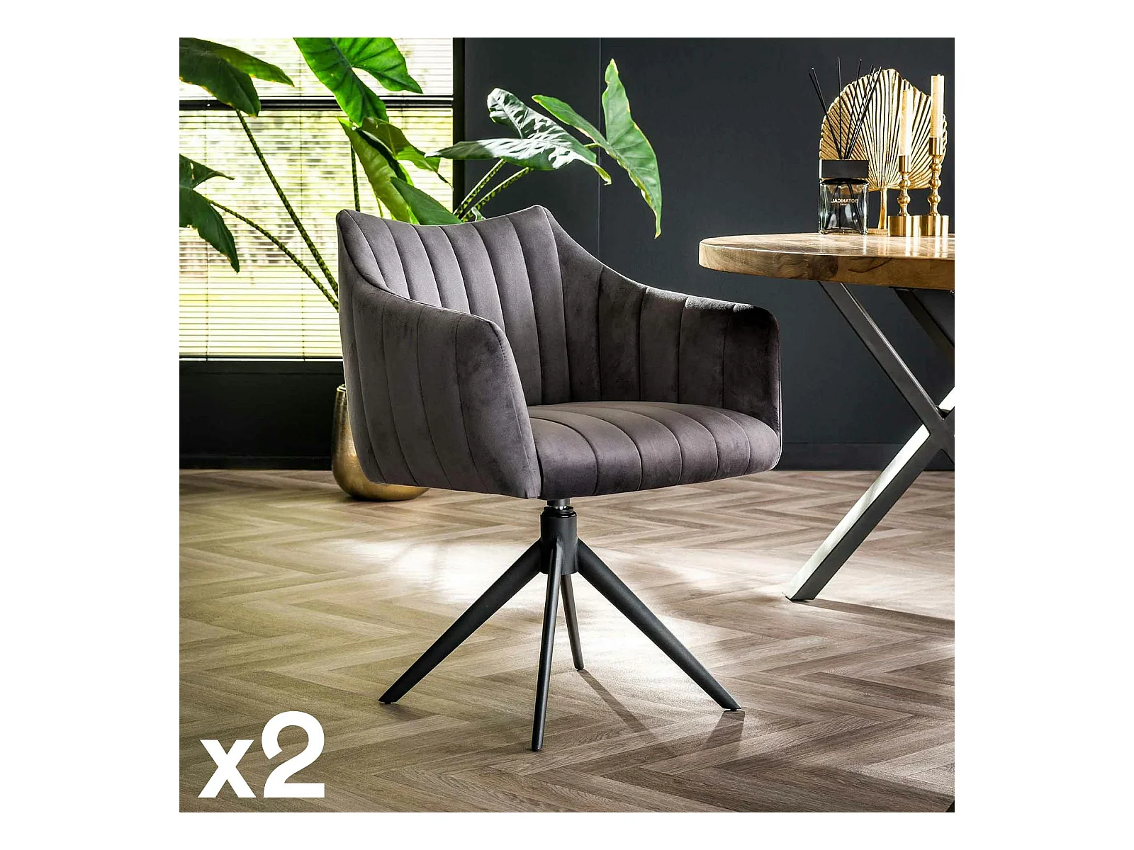 Fauteuil pivotant de table en velours gris à larges bandes (lot de 2) MELBOURNE
