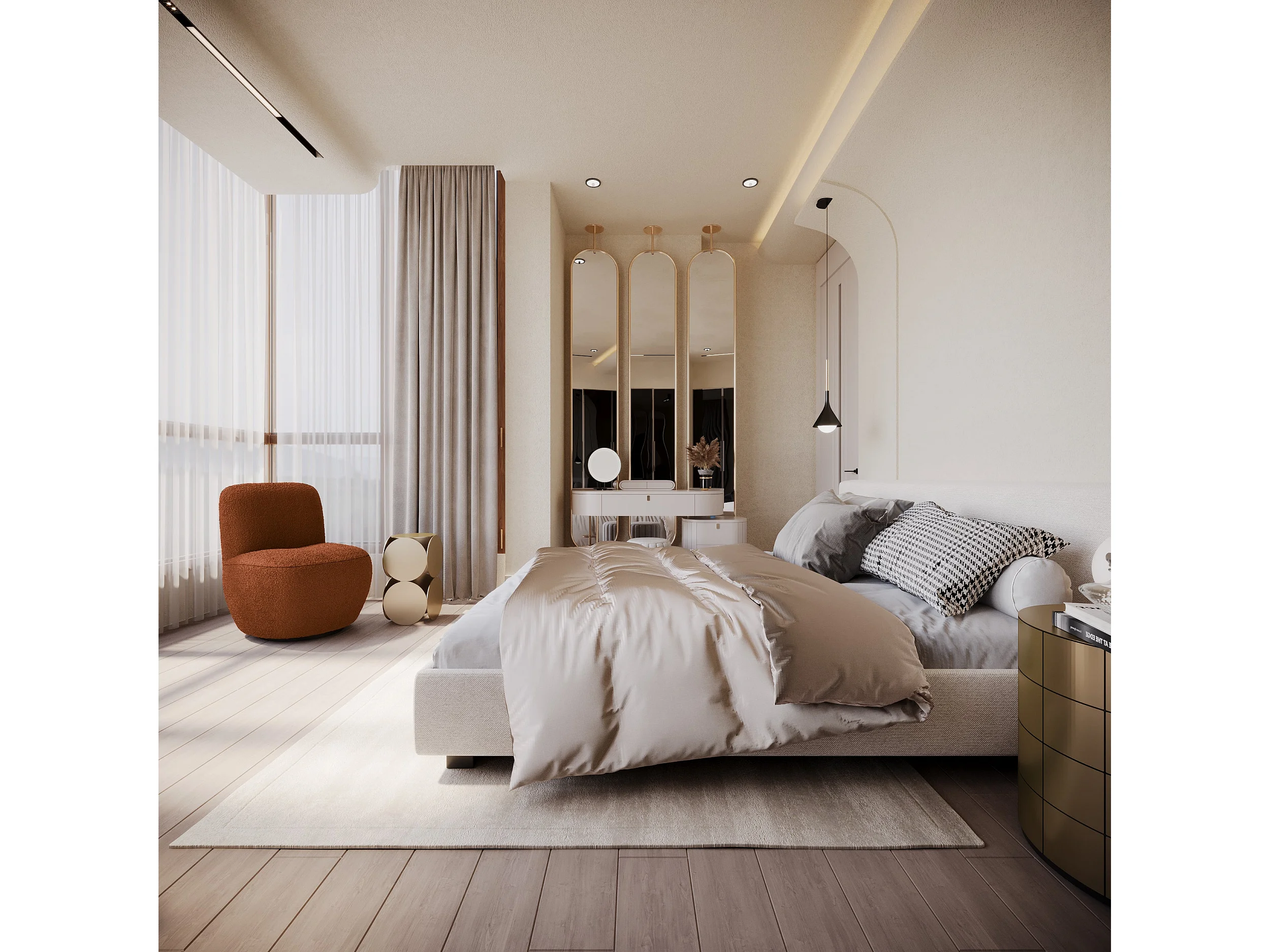 Fauteuil de salon pivotant en bouclette terracotta JENA