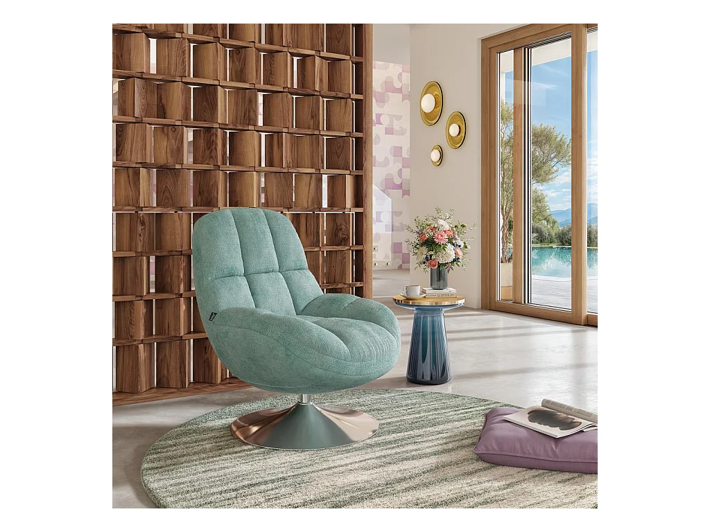 Habitat - Fauteuil pivotant en tissu chenille et métal chromé - Bleu ciel - Mogliano
