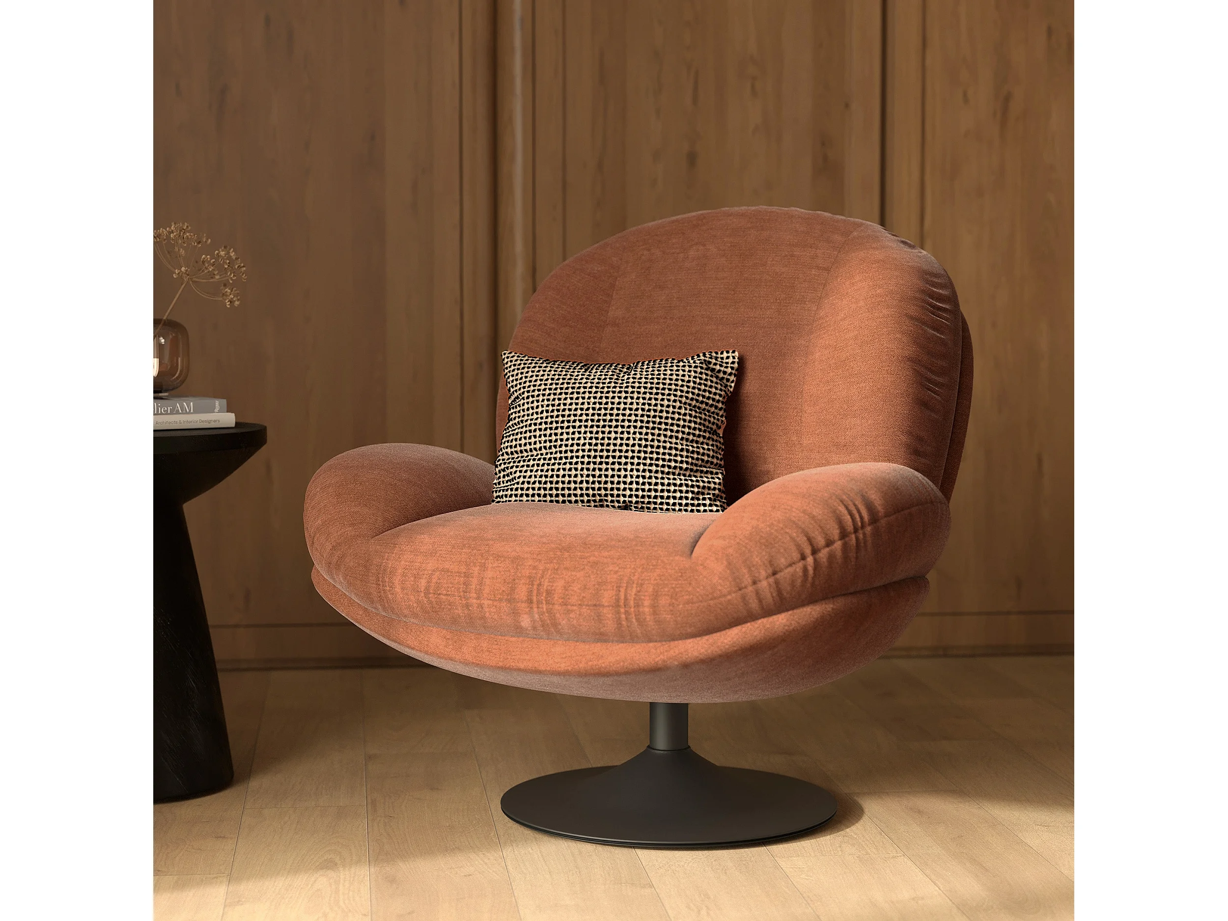 Fauteuil pivotant en tissu effet velours marron - Ricci