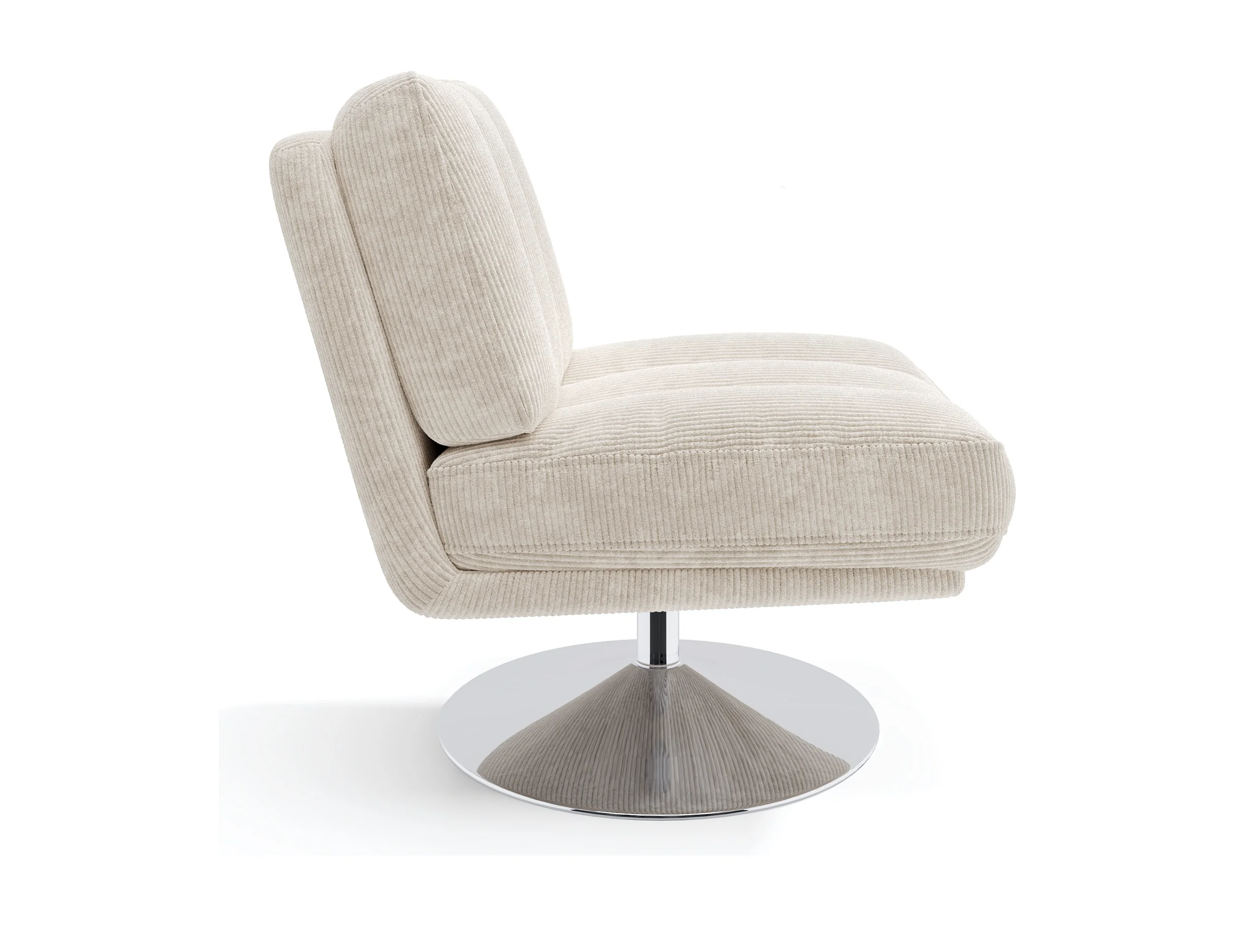 Fauteuil de salon pivotant pied chrome velours côtelé écru TIMELESS