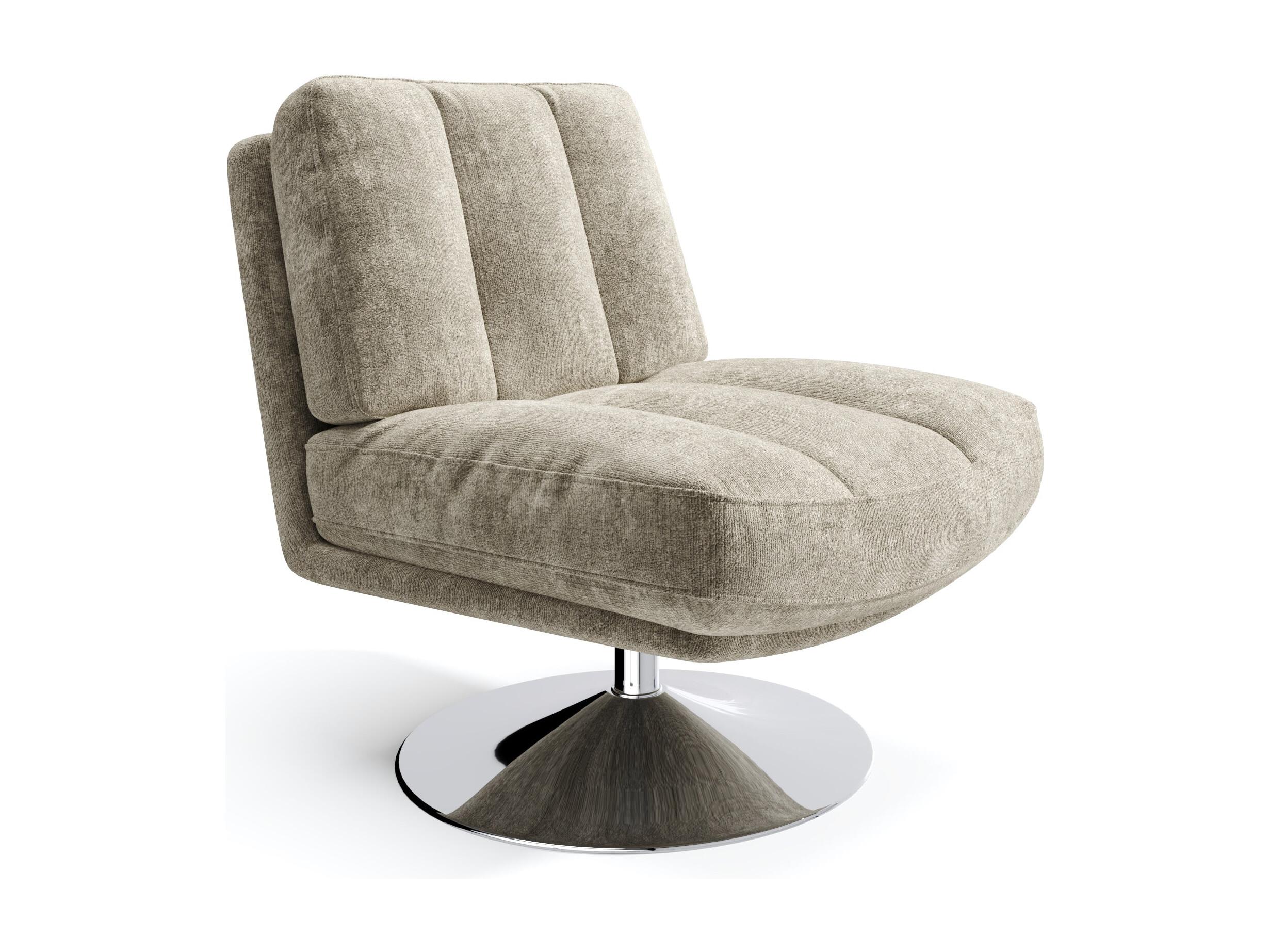 Fauteuil de salon pivotant pied chrome velours texturé taupe TIMELESS
