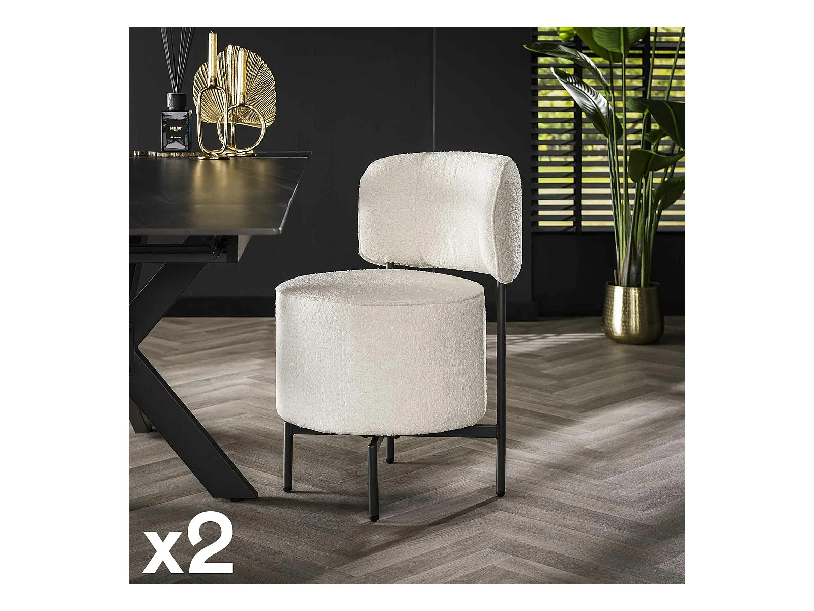 Fauteuil pivotant rond en bouclette blanche (lot de 2) GALWAY