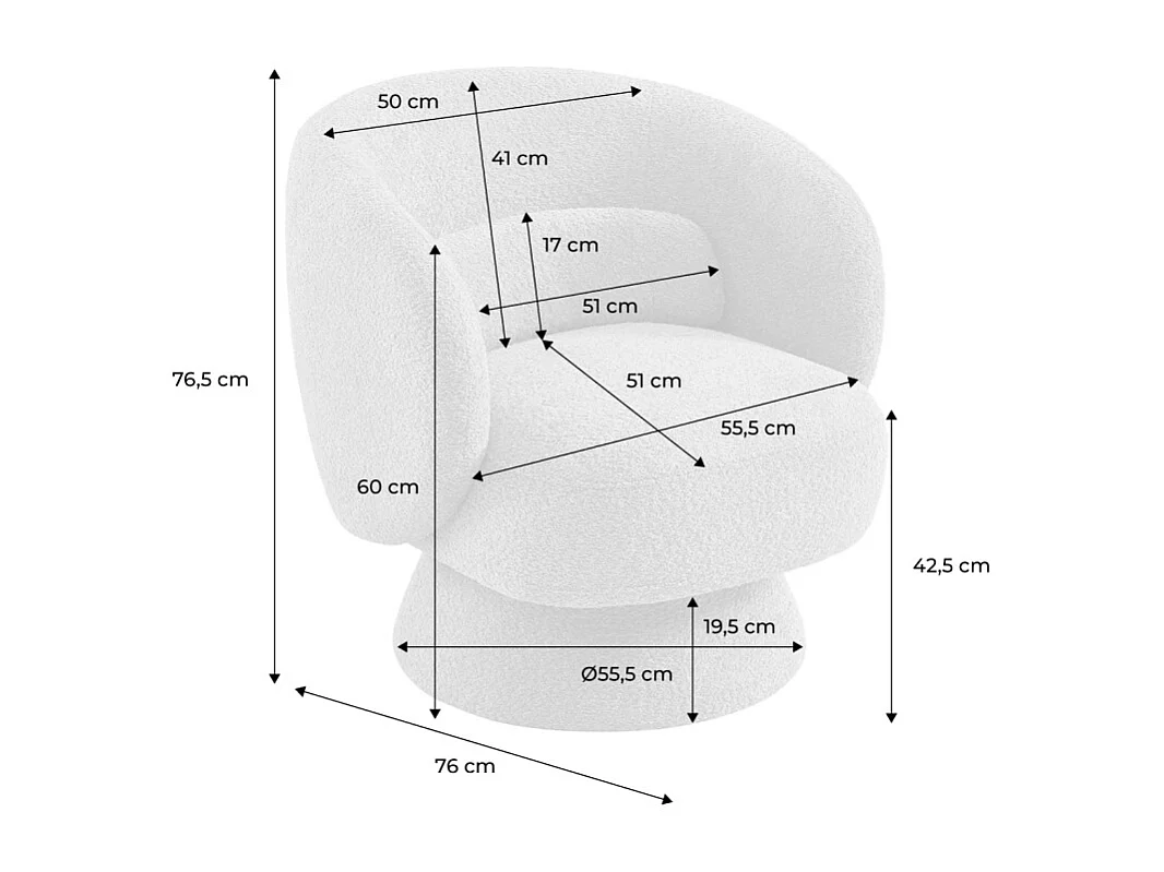 Fauteuil pivotant. rotatif 360° en tissu avec coussin terracotta - L 76 x P 76 x H 76.5cm - Elias